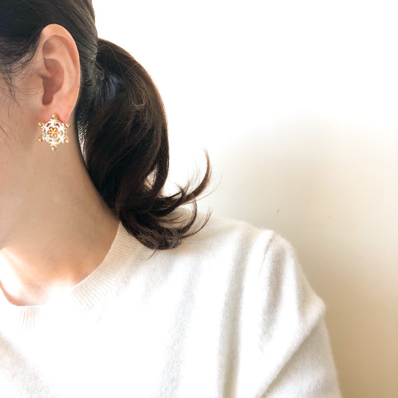 two tone snowflake pierce[p-959] ヴィンテージピアス