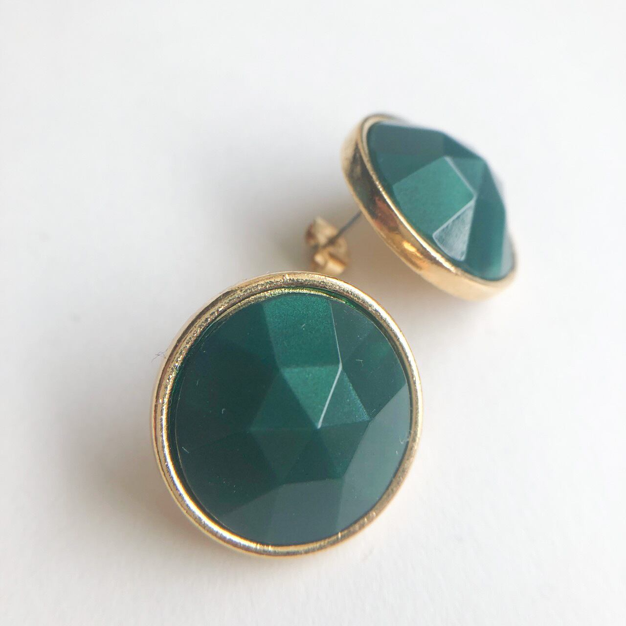 ゴールドメタルの土台に、細やかなカットの深いグリーンの立体的なパーツで上品にデザインされた、とても素敵な”AVON”(エイボン)のヴィンテージピアスです。