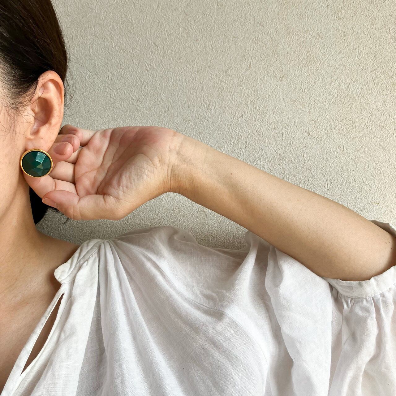 ※ピアス穴の位置によっては少し傾きやすいので、固定される大きめのキャッチもお付けします。