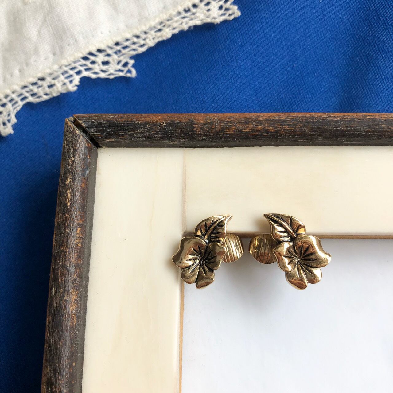 落ち着いたゴールドメタルのフラワー&リーフのデザインが、とても素敵な”AVON”(エイボン)のヴィンテージイヤリングです。