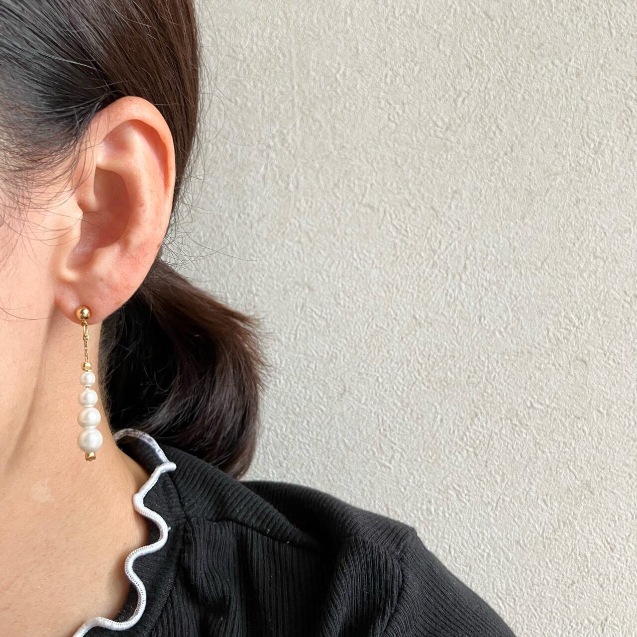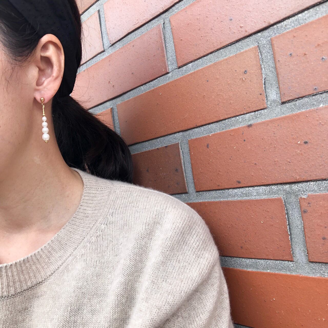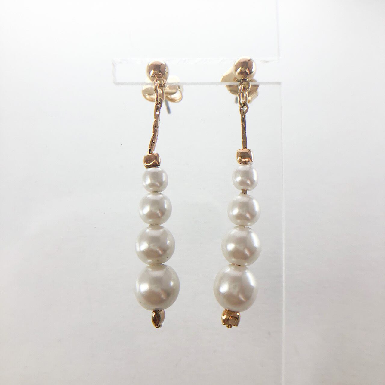 ゴールドメタルチェーンに4つのパールビーズが連なって揺れるデザインが、とても素敵な”AVON”(エイボン)のヴィンテージピアスです。