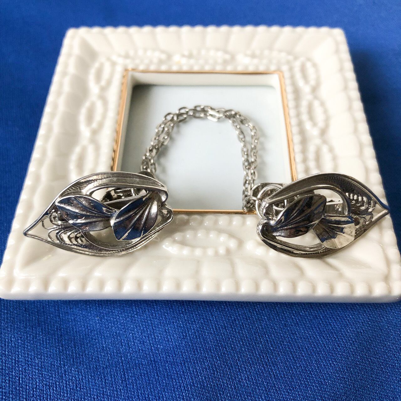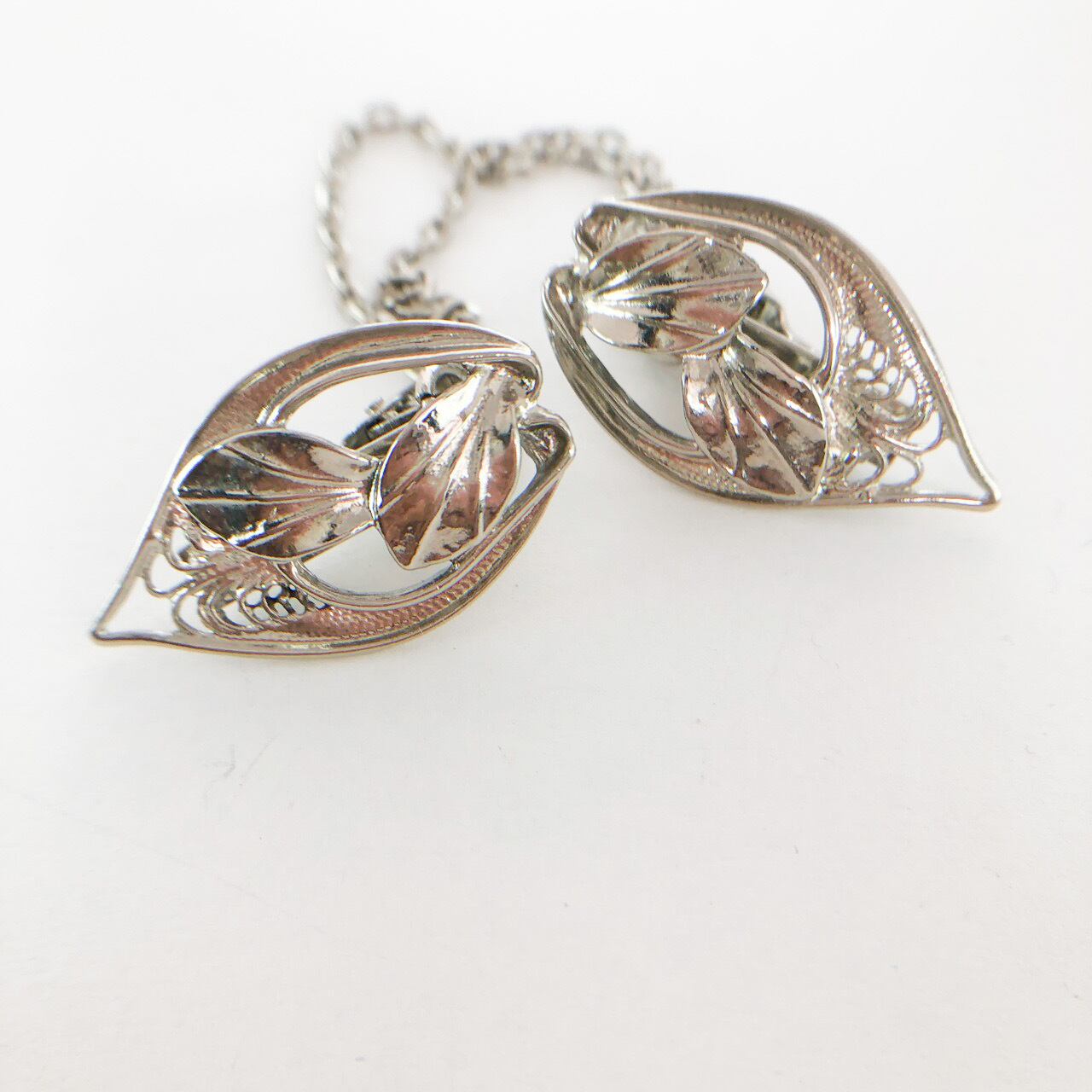落ち着いたシルバーメタルの、上品なリーフのデザインがとても素敵なヴィンテージセータークリップです。