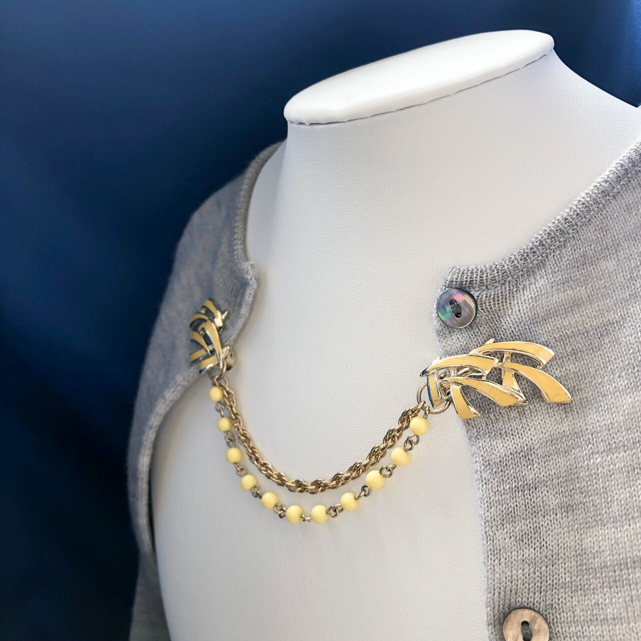 エナメルとビーズでデザインされた、とても素敵なヴィンテージセータークリップです。