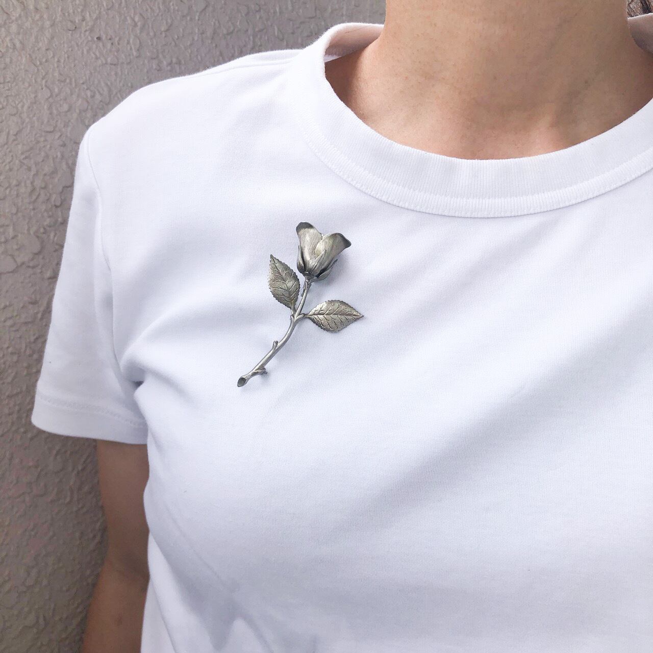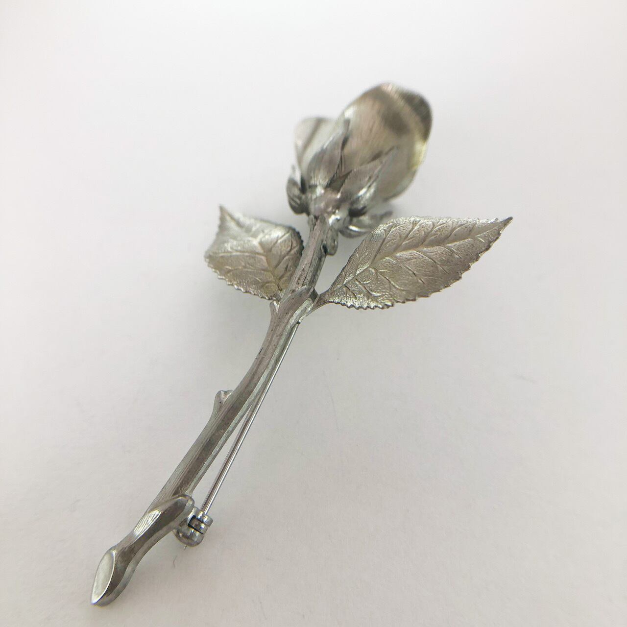 マット感のある落ち着いた加工がされたシルバーメタルで立体的な薔薇がデザインされた、とても素敵なヴィンテージブローチです。