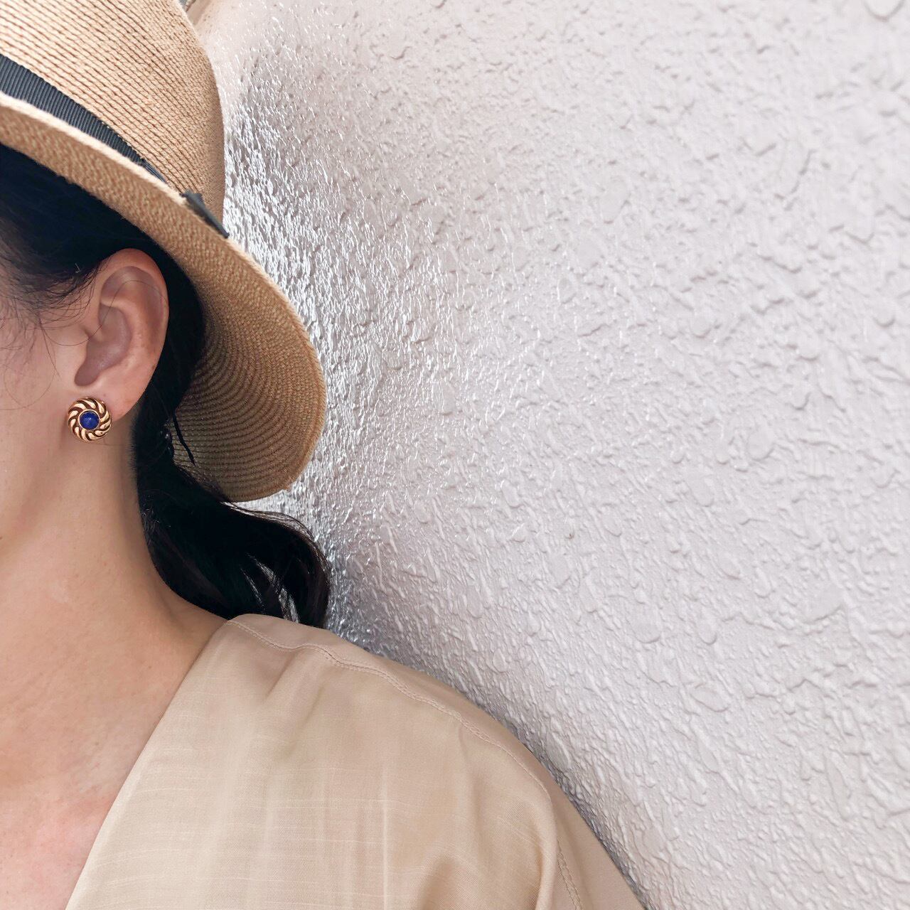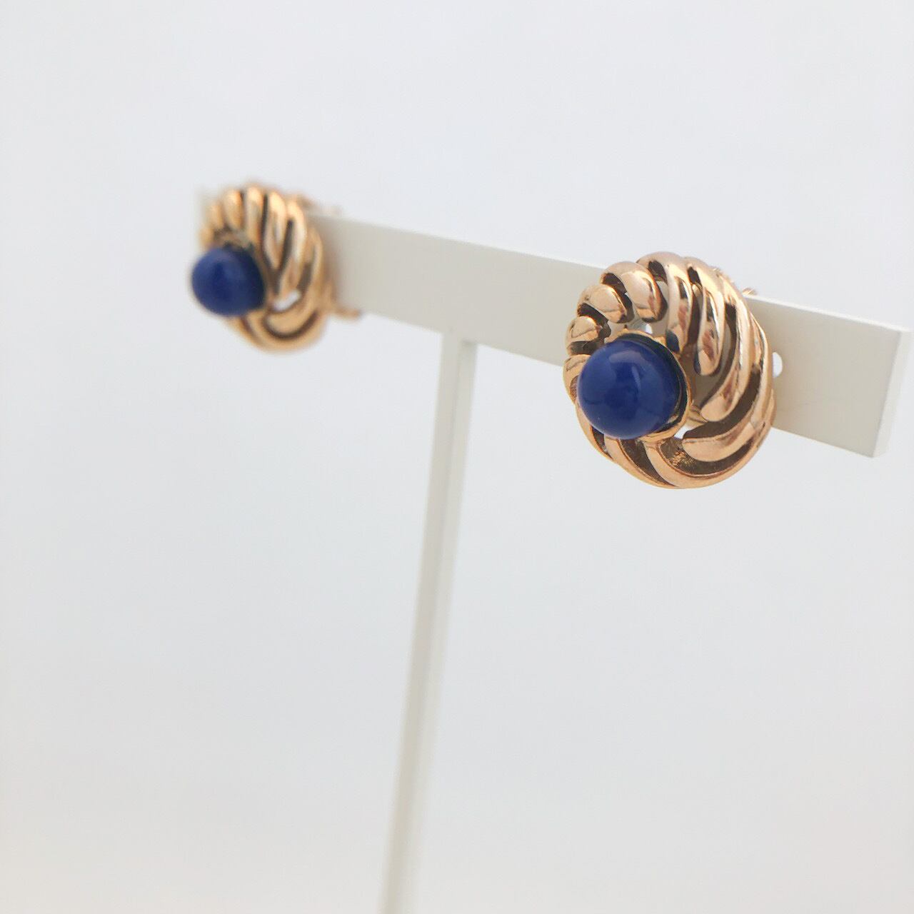 ゴールドメタルの装飾的な土台に、深みのあるブルービーズがアクセントになったデザインが、とても素敵な”AVON”(エイボン)のヴィンテージイヤリングです。