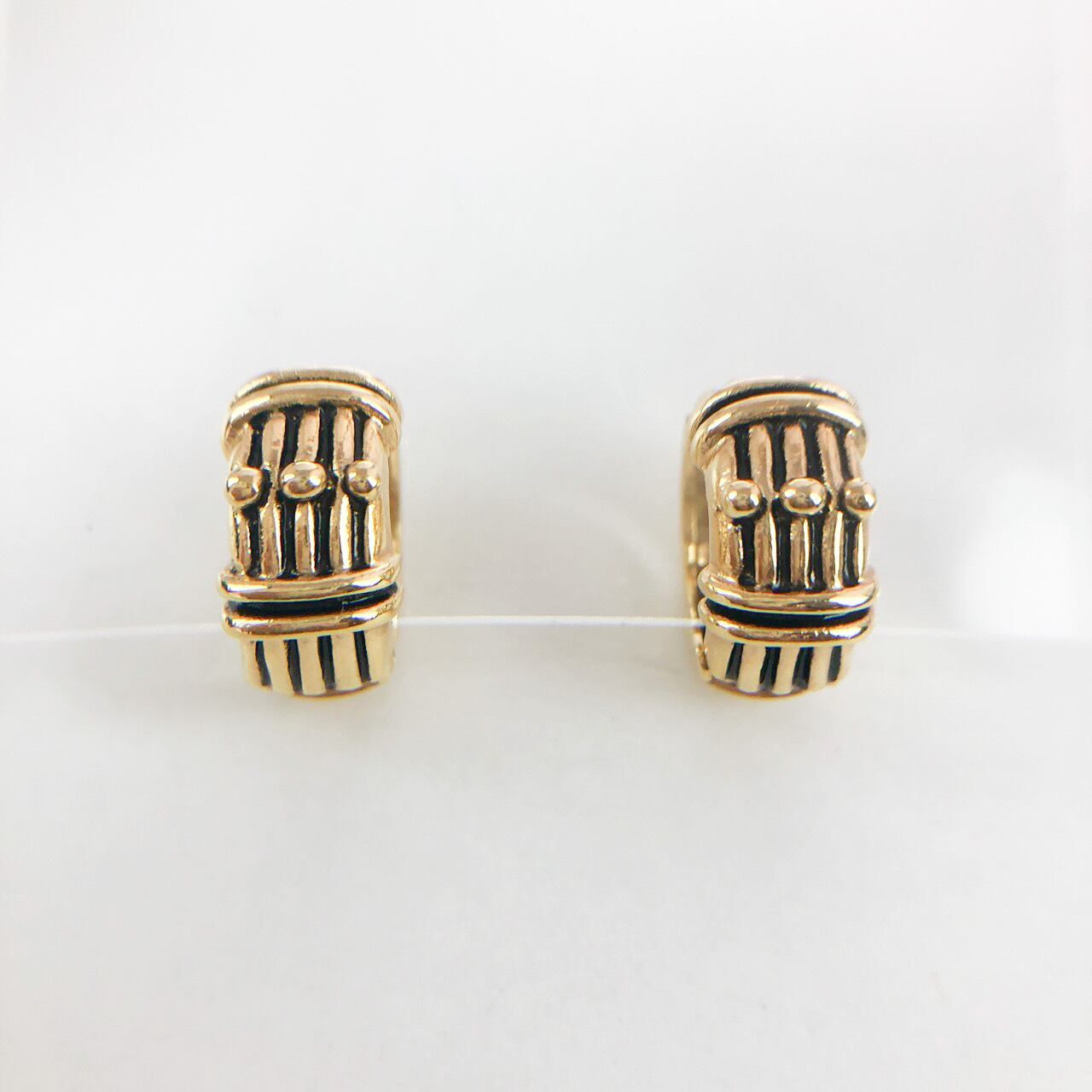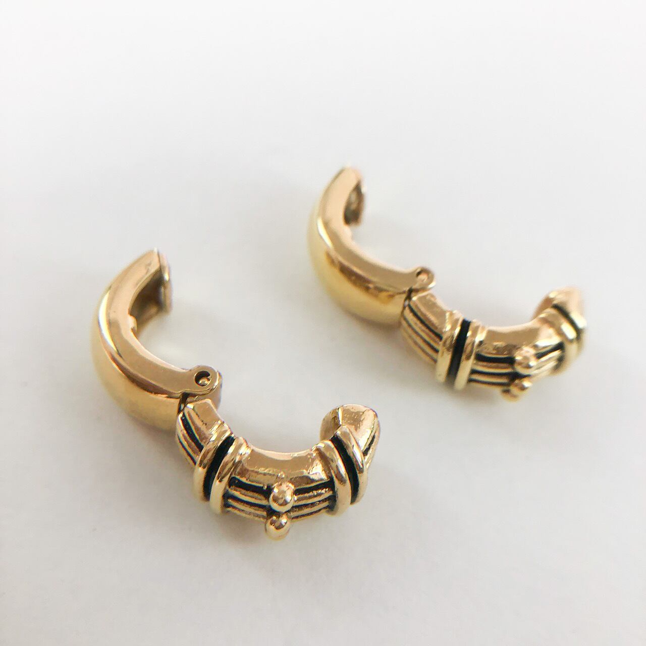 ゴールドメタルのデザイン&シンプルの艶の面があり好きな方で付けられる、ユニークでとても素敵な2wayフープのヴィンテージイヤリングです。