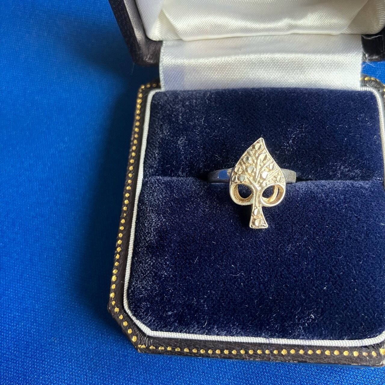 繊細なスペードのようなお洒落なデザインが、とても素敵なシルバー925素材のヴィンテージリングです。