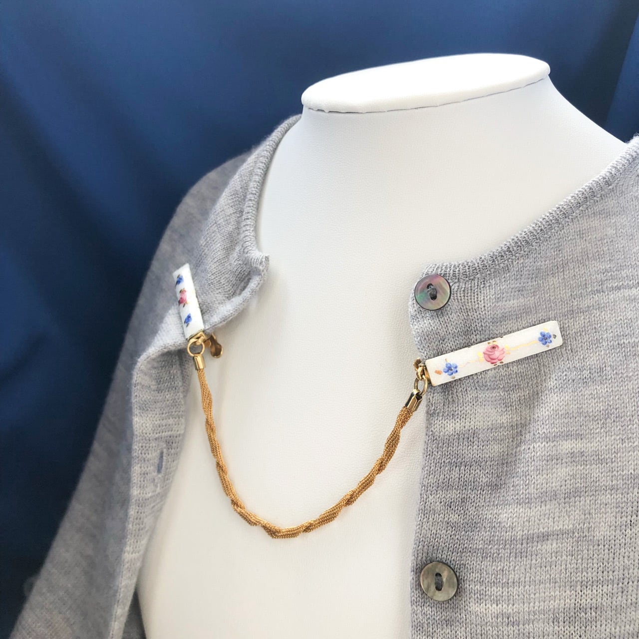 50年代頃に肩掛けカーディガンの前を留めるので流行ったアイテムで、色々な使い方が出来ます。