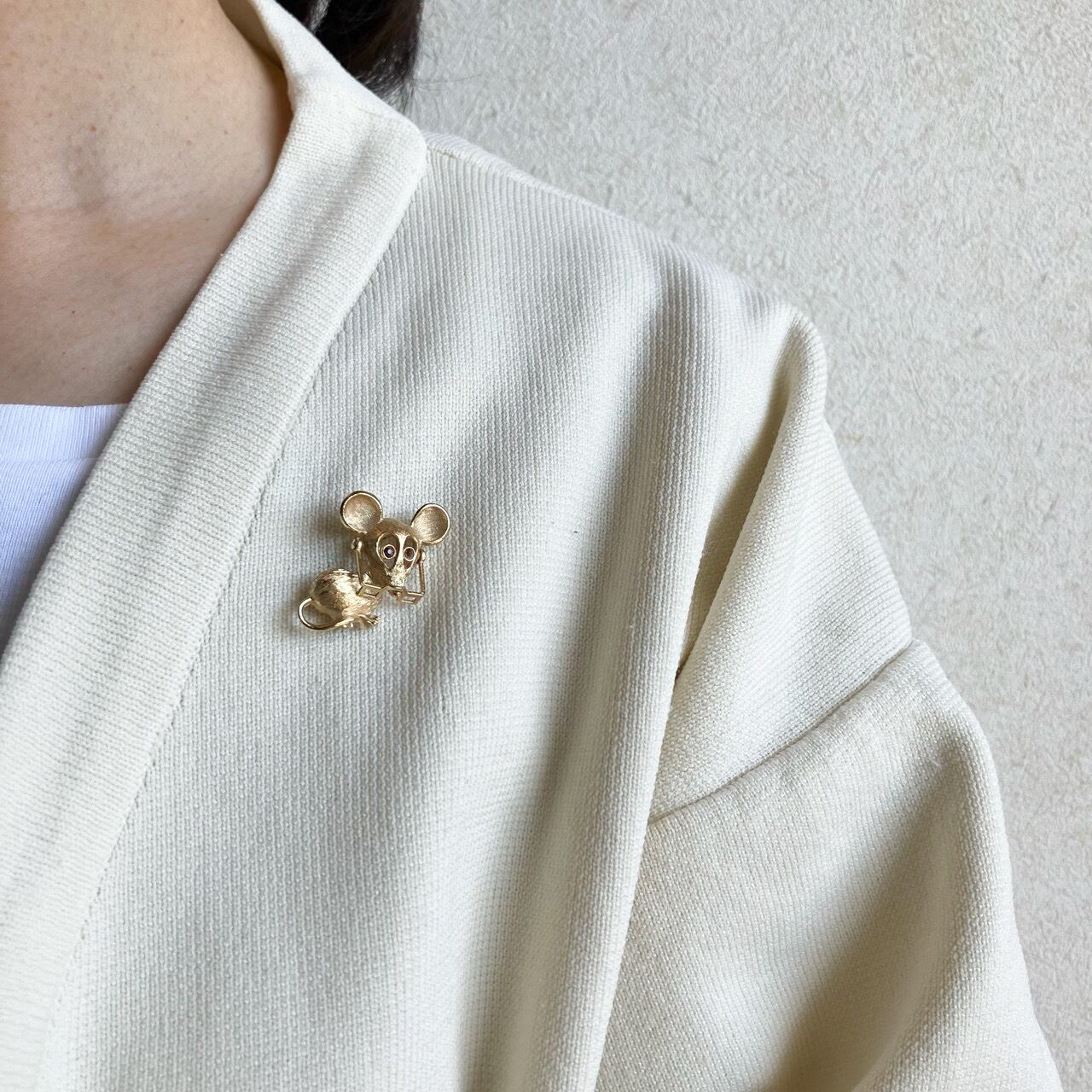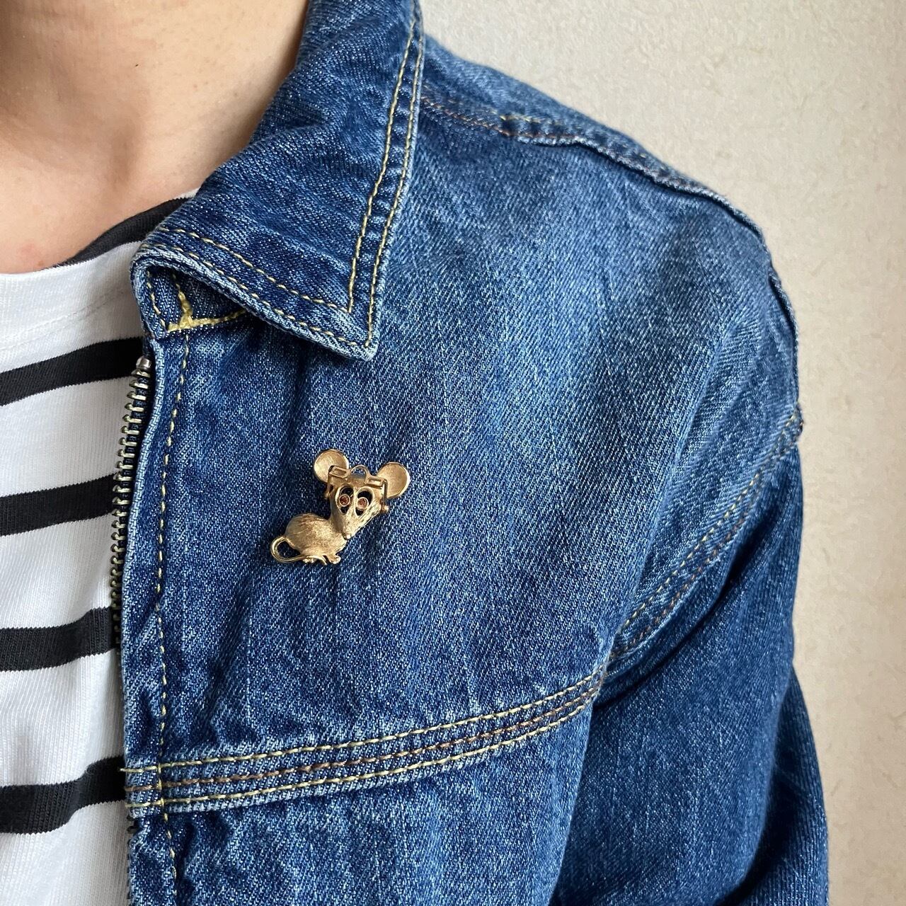 落ち着いたゴールドメタルのメガネをかけたネズミのデザインが、ユニークでとても素敵な”AVON”(エイボン)のヴィンテージブローチです。