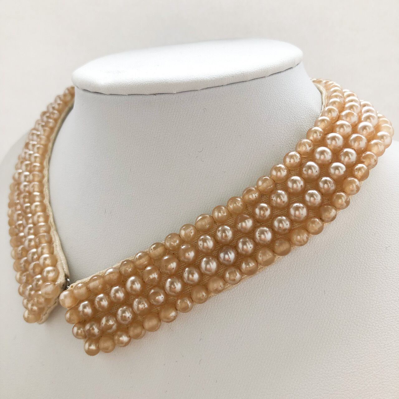 ヴィンテージ感溢れる落ち着いたライトベージュ系パールビーズの、上品なデザインがとても素敵なヴィンテージのつけ襟です。