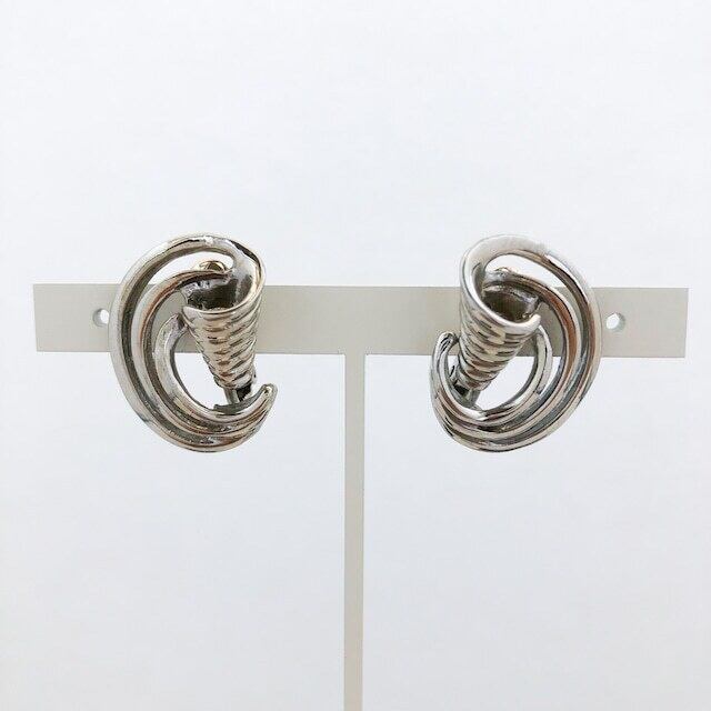 シルバーメタルのモダンなデザインが、とても素敵なヴィンテージイヤリング。