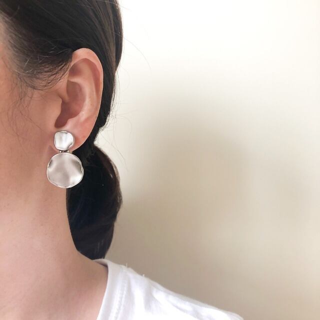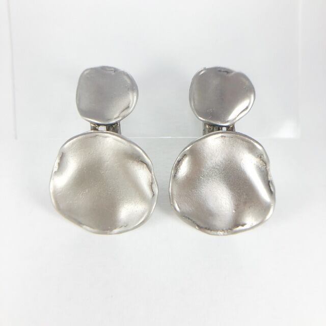 マットで上品なシルバーメタルでモダンなサークル型にデザインされた、とても素敵なヴィンテージイヤリング。