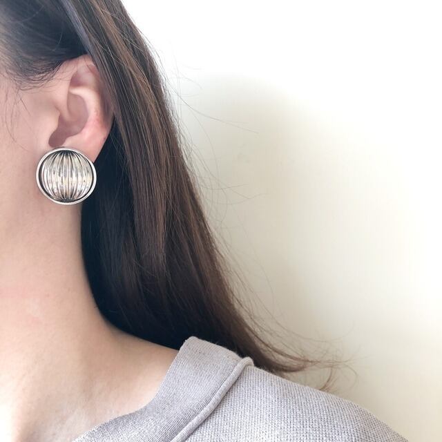 落ち着いたシルバーメタルでモダンなオブジェのようなドーム型にデザインされた、とても素敵なヴィンテージイヤリング。