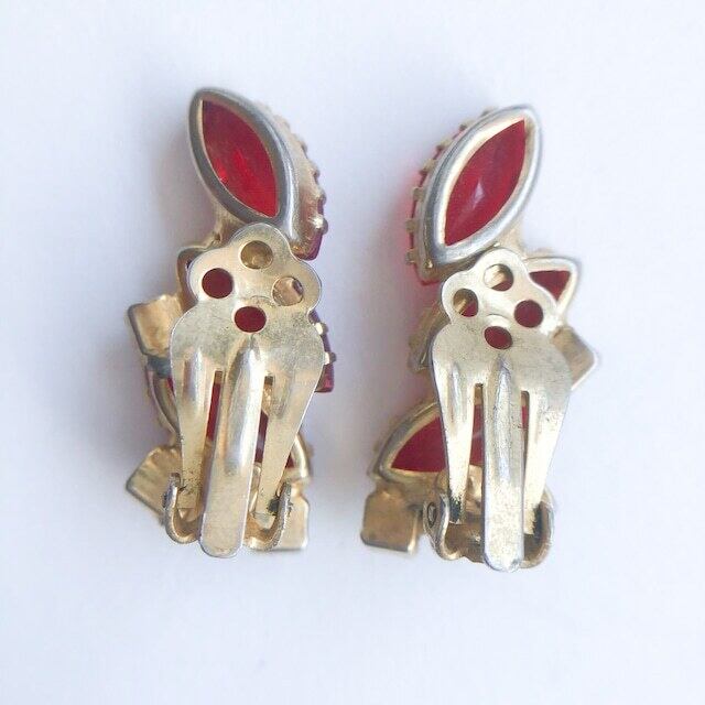 レッド&オーロララインストーンで華やかにデザインされた、とても素敵なヴィンテージイヤリングです。
