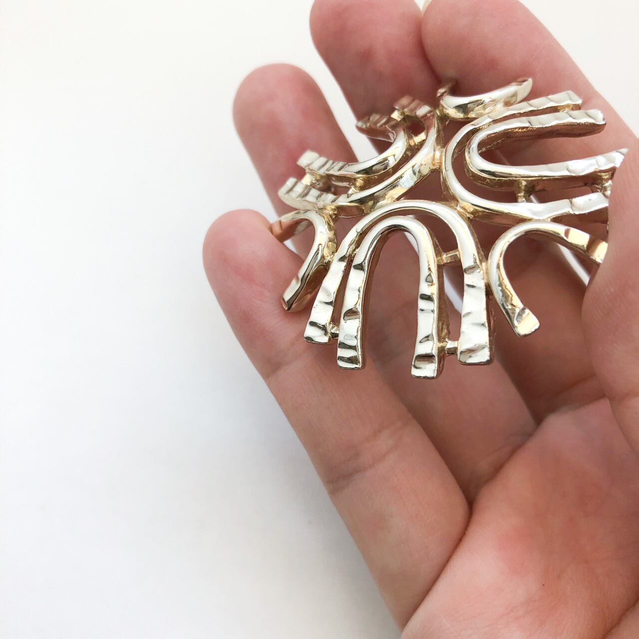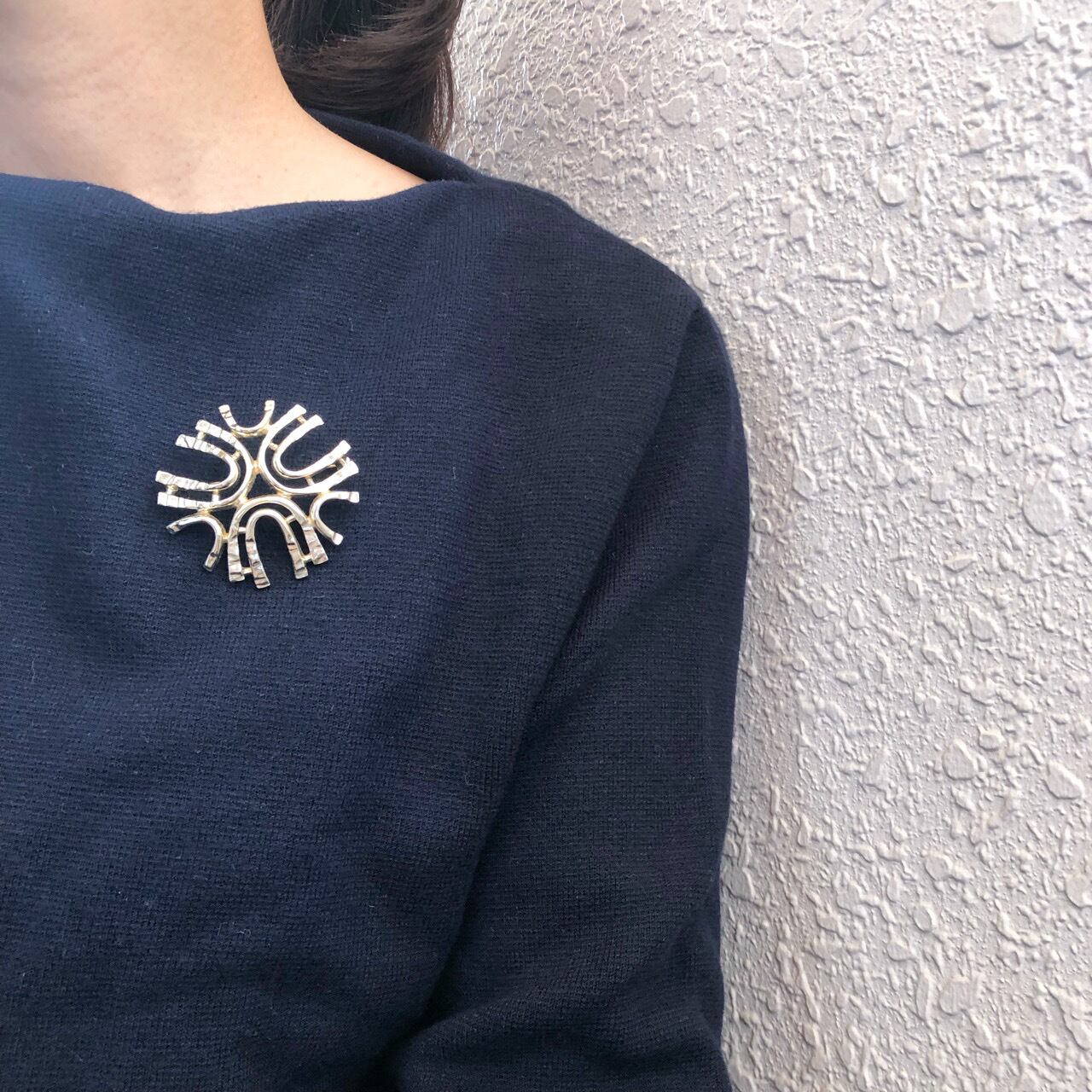 1949年に設立されたジュエリーメーカー”Sarah Coventry”(サラコベントリー)の、ゴールドメタルのモダンなデザインがとても素敵なヴィンテージブローチです。