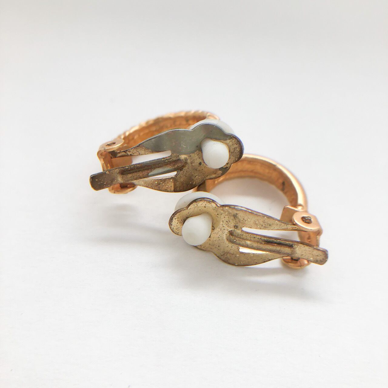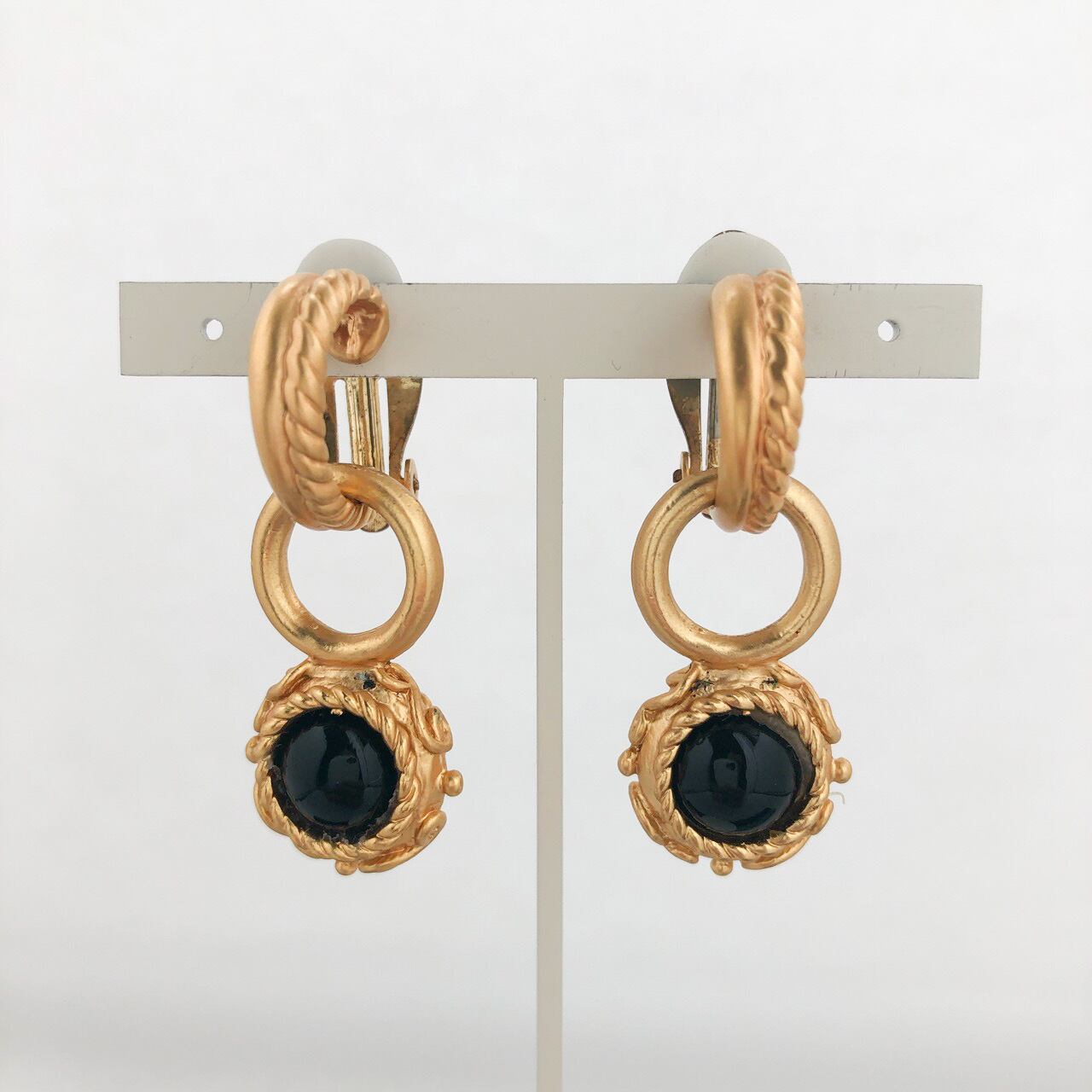 ゴールドメタルフープのトップに、クリア&ブラックのリバーシブルパーツが揺れる、お洒落なデザインで存在感のあるとても素敵なヴィンテージイヤリングです。