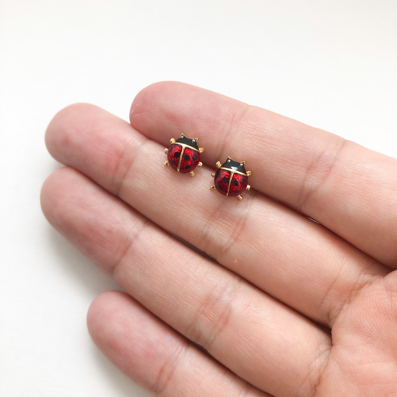 落ち着いたレッドエナメルの小さなレディバグ、てんとう虫のデザインが、とても素敵な”AVON”(エイボン)のヴィンテージピアスです。