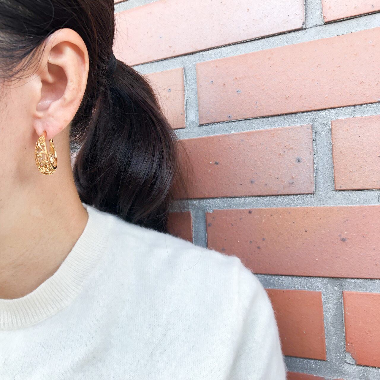 gold filigree hoop pierce[p-1054] ヴィンテージピアス