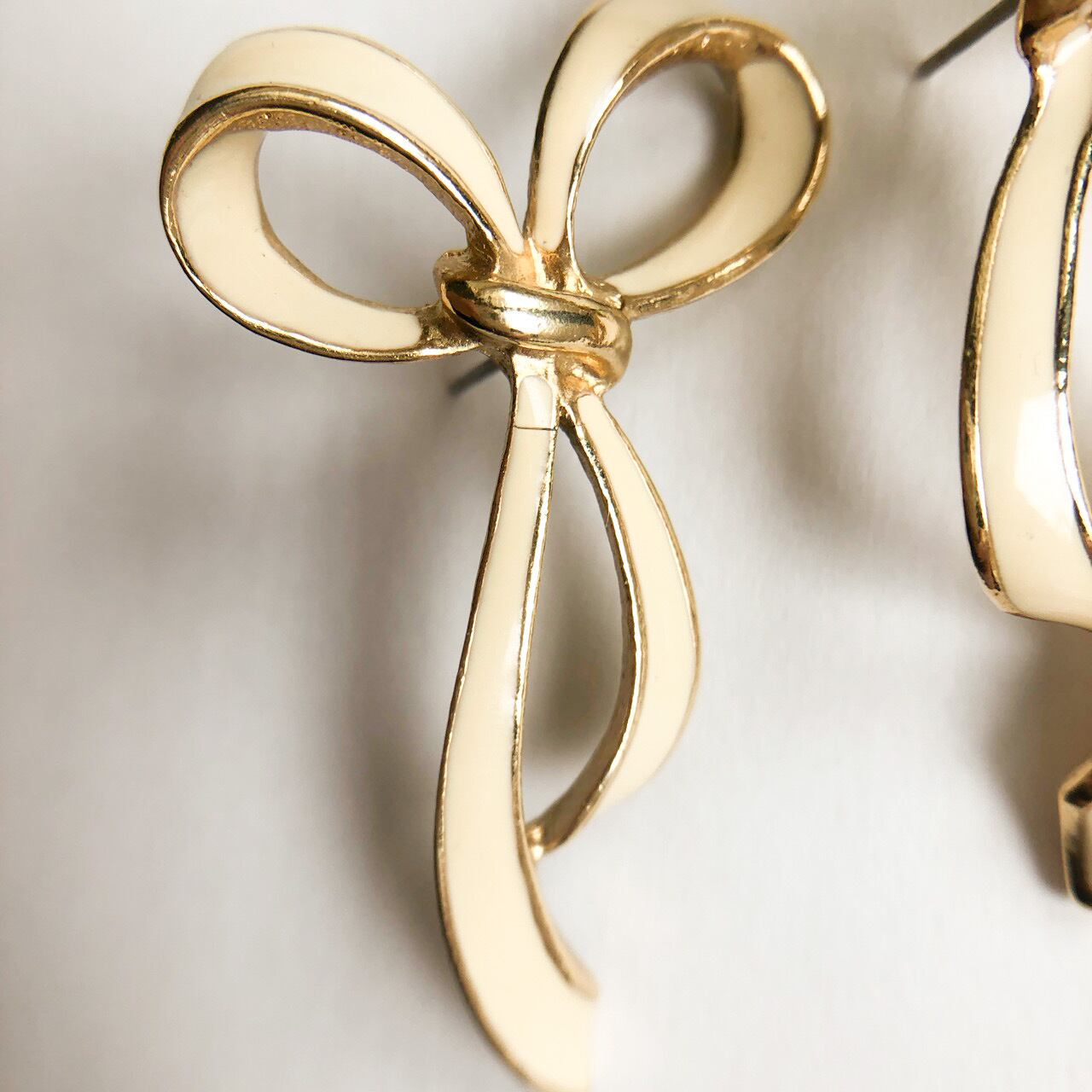 ”AVON” cream enamel bow brooch[b-374] & pierce[p-1057]