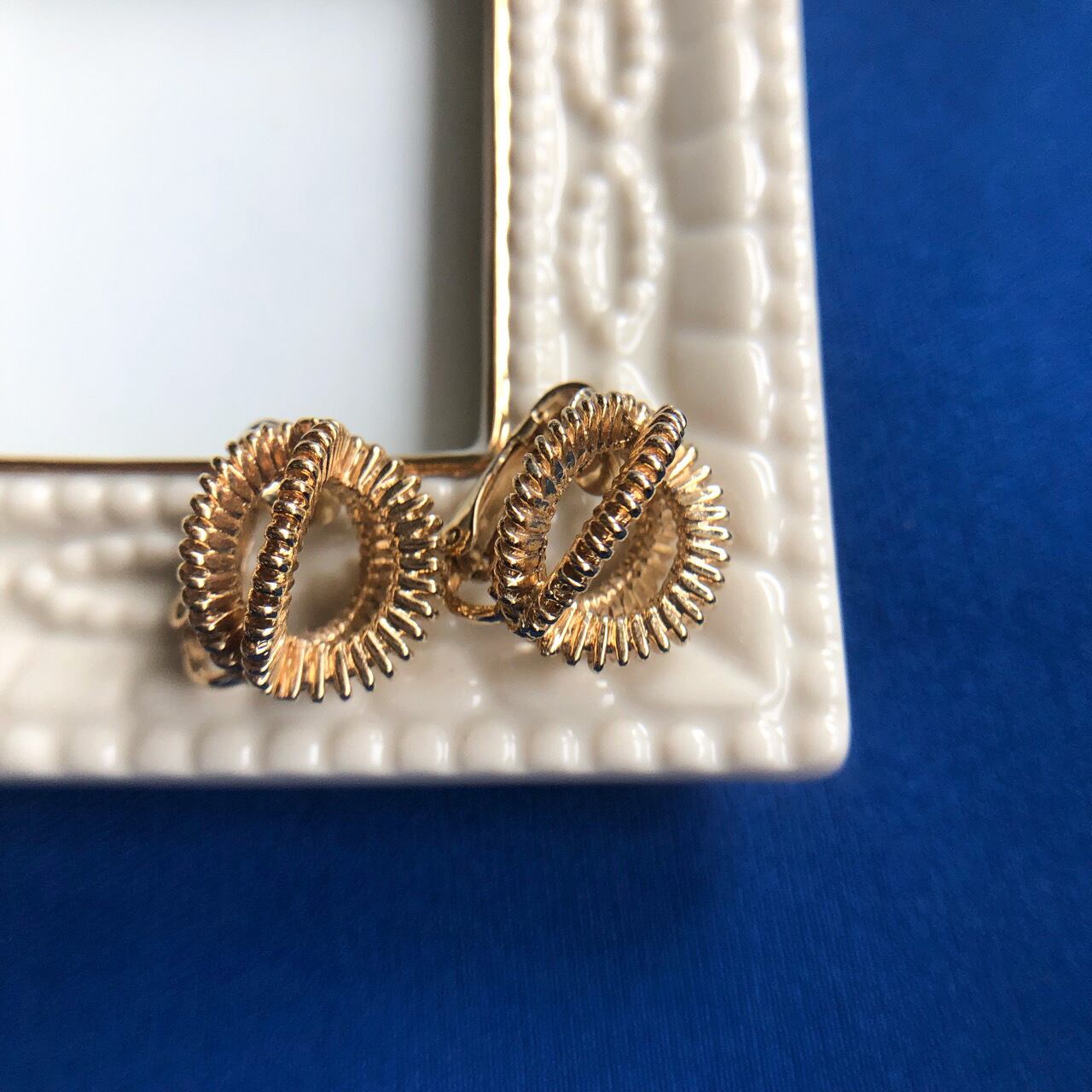 加工されたゴールドメタルで立体的な丸みのあるオブジェのようにデザインされた、とても素敵な”AVON”(エイボン)のヴィンテージイヤリングです。