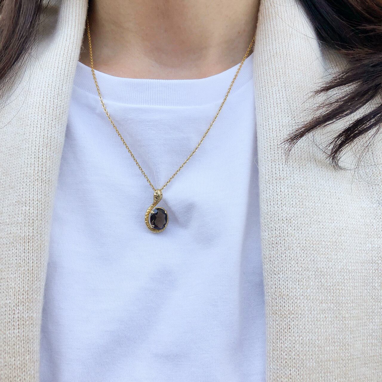 落ち着いたゴールドメタルの蛇と、ブラウンラインストーンのデザインが、さりげなく個性的でお洒落な素敵なヴィンテージネックレスです。