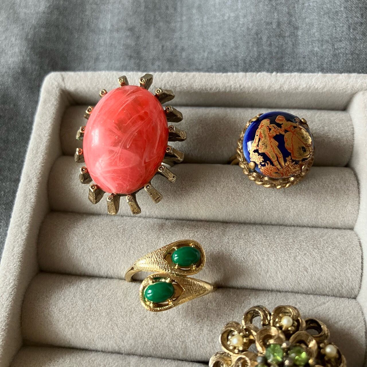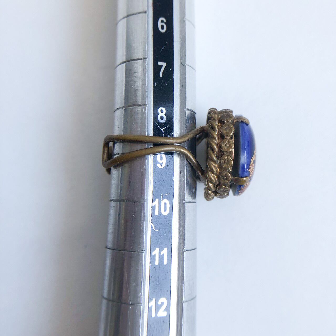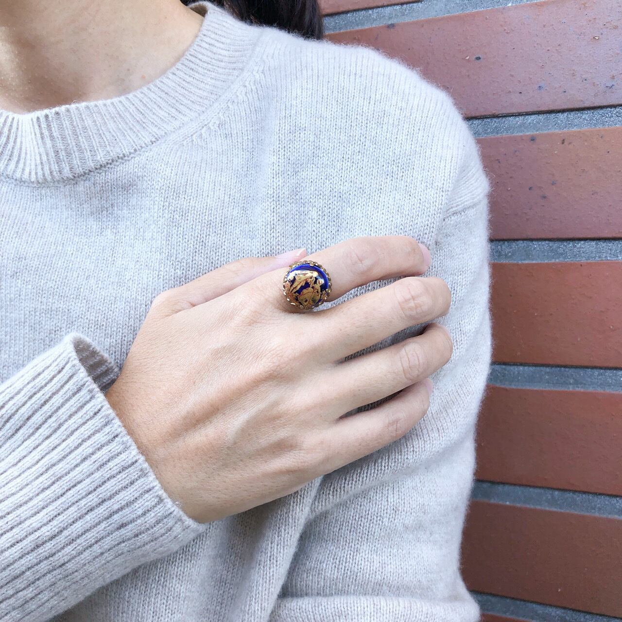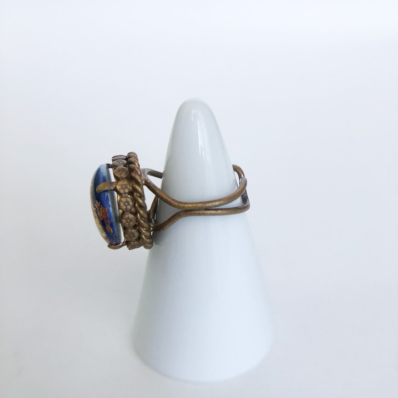 深いブルーのベースにヴィクトリアン調のデザインが、とても素敵なヴィンテージリングです。