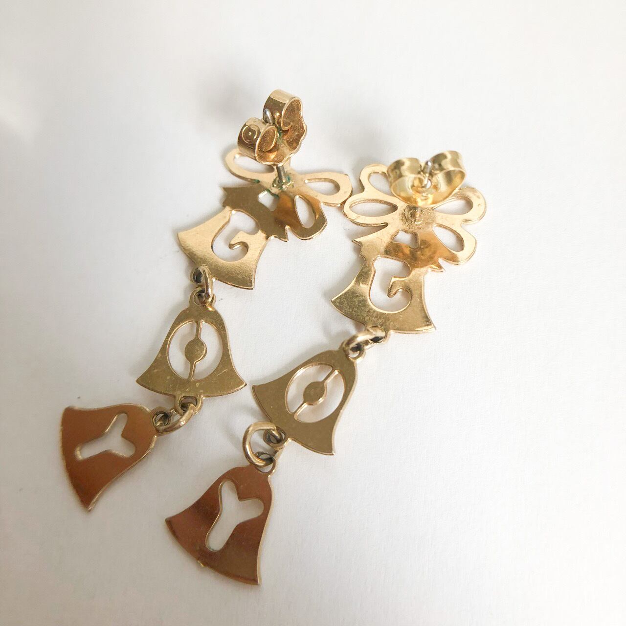 ゴールドメタルのリボンとベルが揺れる“JOY”の文字がとても素敵な”AVON”(エイボン)のヴィンテージピアスです。