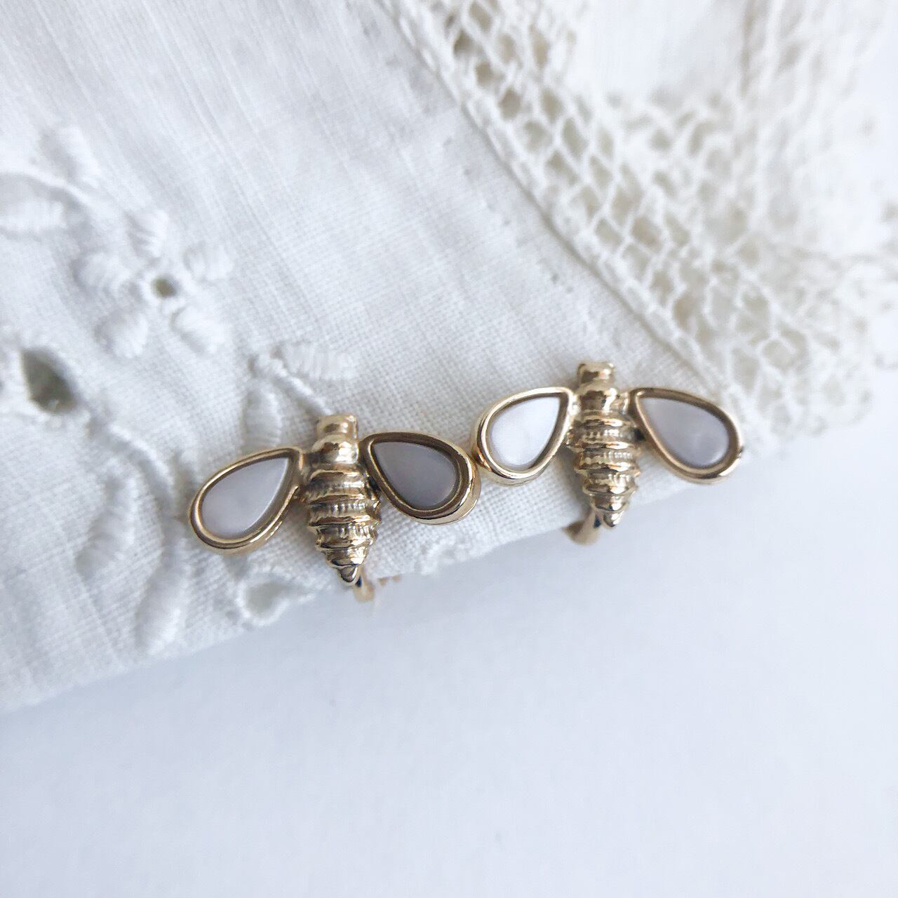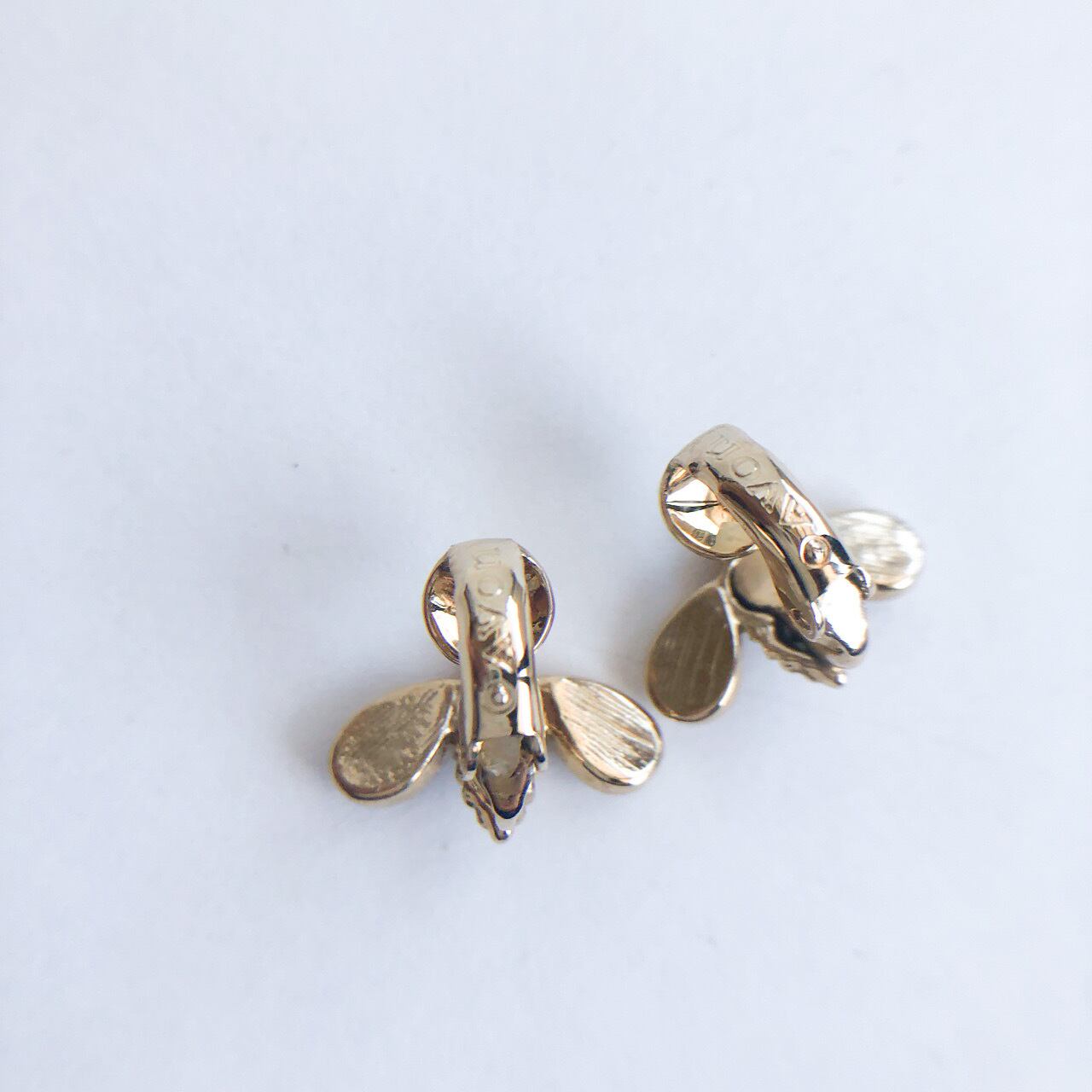 マザーオブパール風のパーツが埋め込まれたゴールドメタルの小さな蜂のデザインが、とても素敵な”AVON”(エイボン)のヴィンテージイヤリングです。