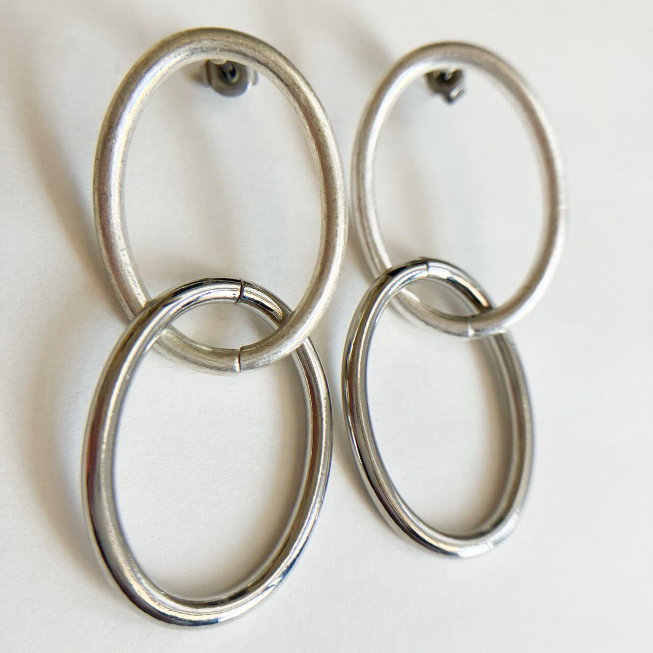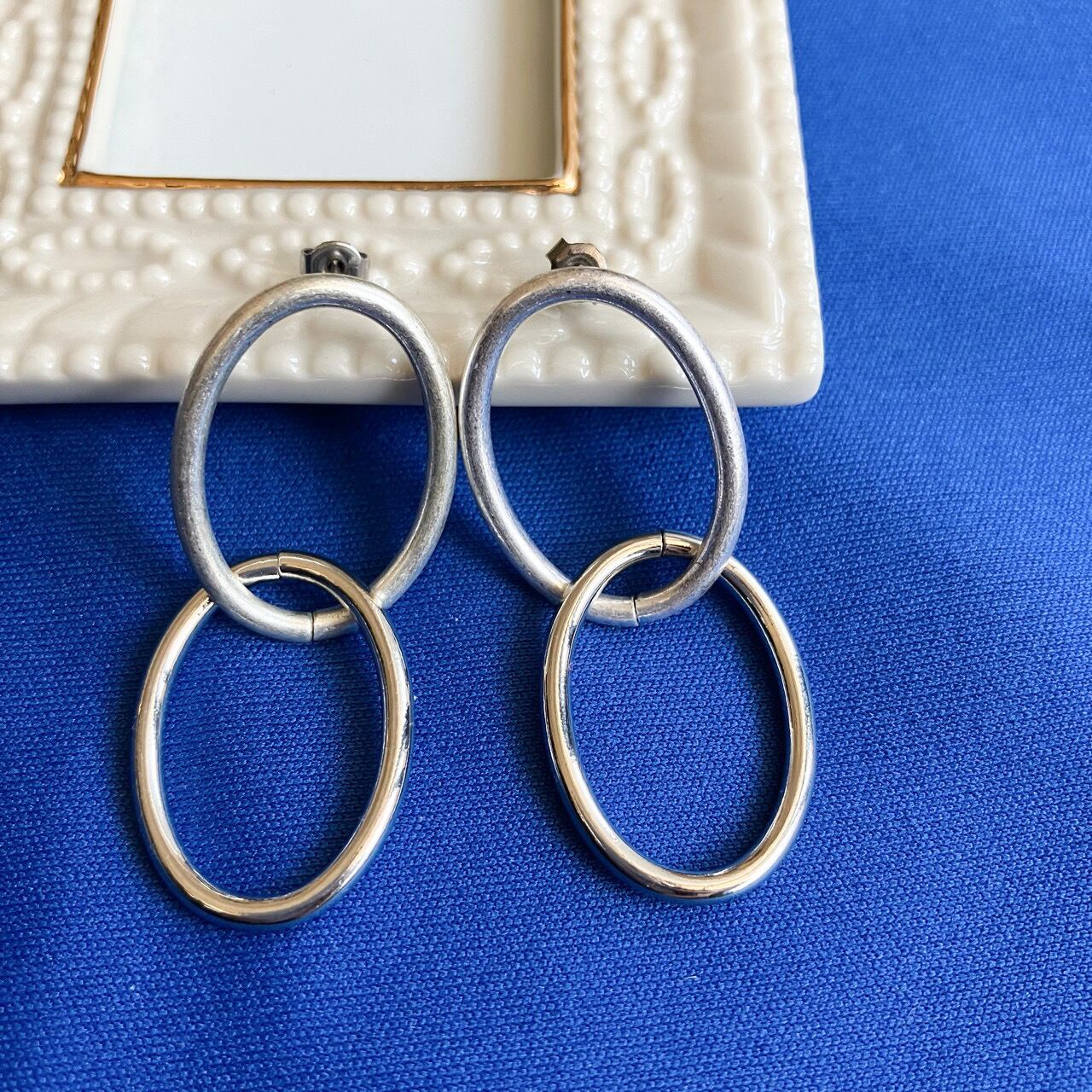 マット&艶のシルバーメタルの2つのサークルパーツが組み合わされた、シンプルモダンで洗練されたデザインが、とても素敵なヴィンテージピアスです。