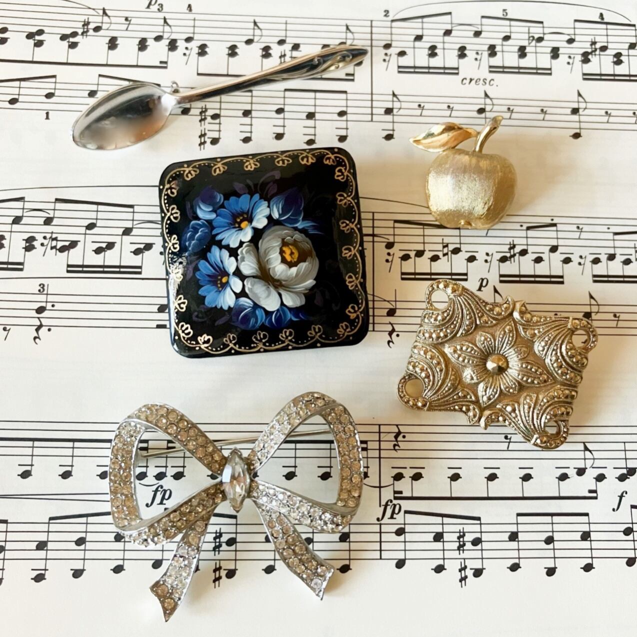 Rossian lacquer flower brooch[b-419] ヴィンテージブローチ