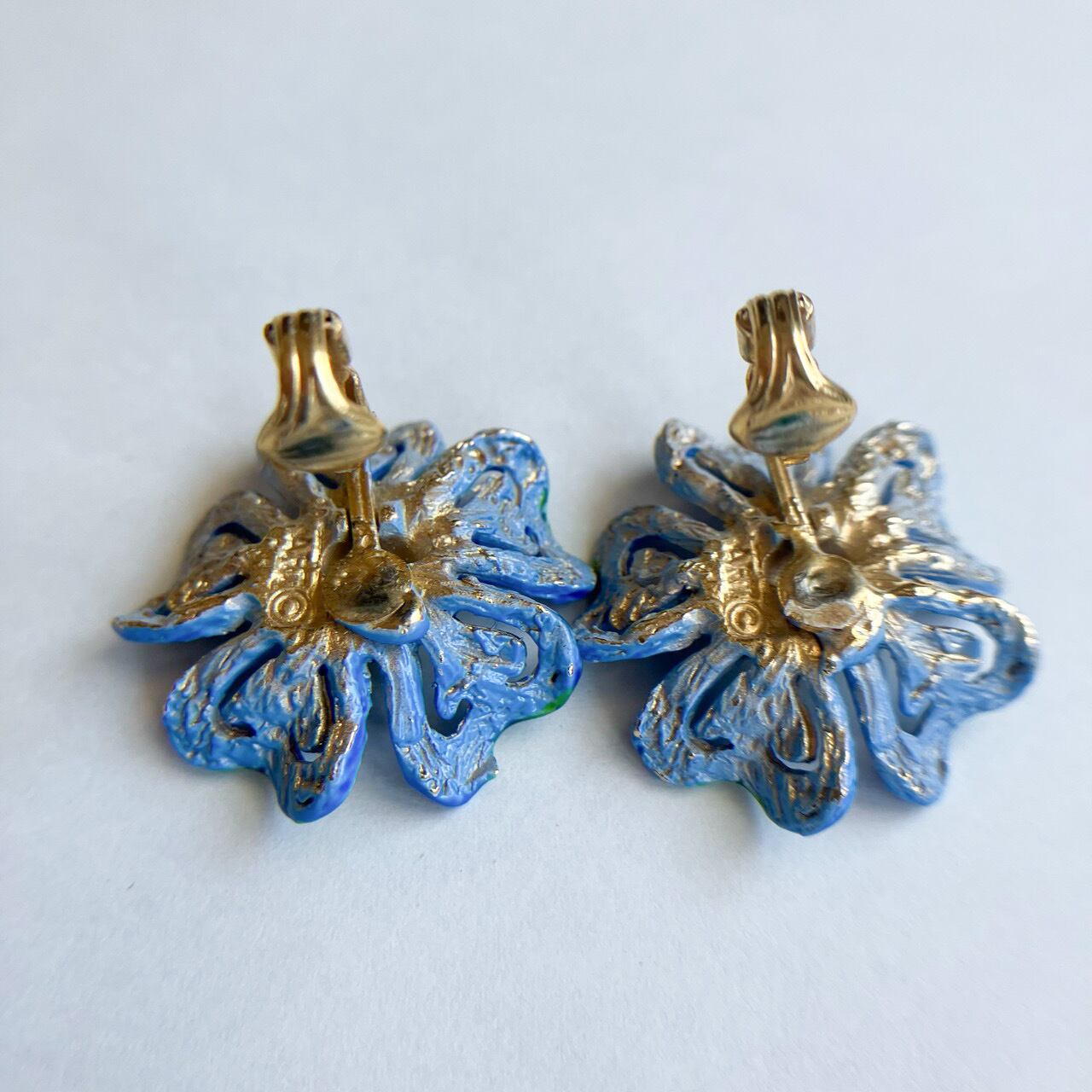 1940年代にNYで設立されたジュエリーメーカー“ART”の、落ち着いたブルー&グリーンエナメルの立体的なお花のデザインが、とても素敵なヴィンテージイヤリングです。