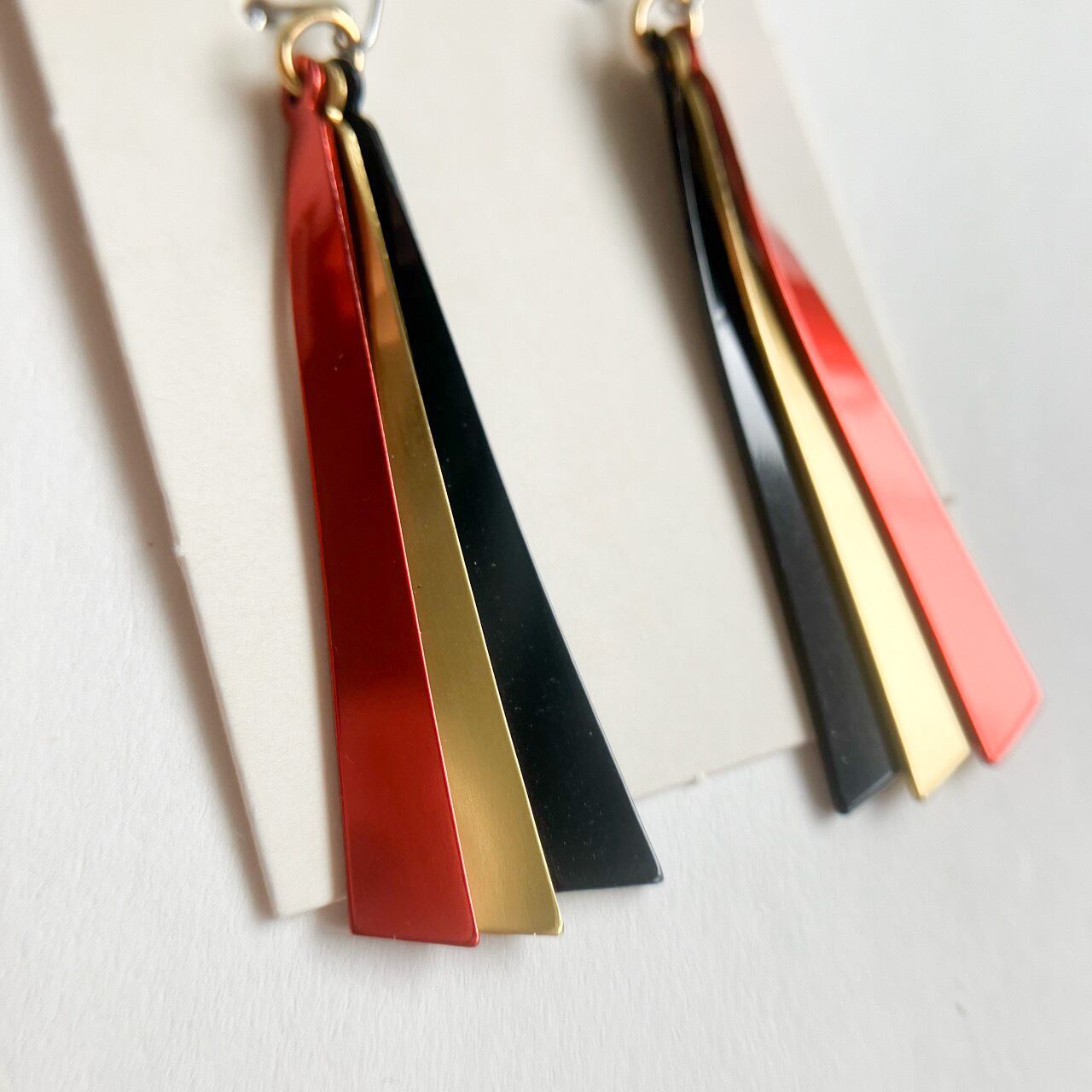 通常付けている時は重なっているので赤が前になっていて、揺れると重なっているパーツが見える感じです。