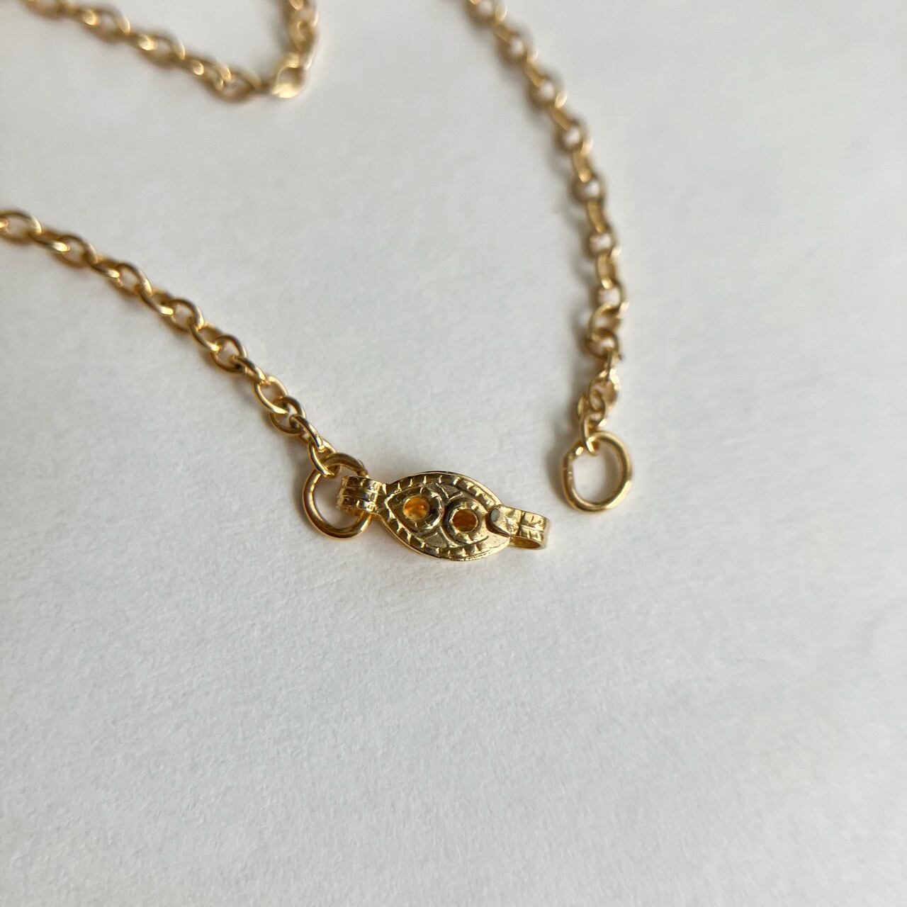 ゴールドメタルの土台に、グリーンとサーモン系のセミプレシャスストーンでパイナップルがデザインされた、とても素敵なヴィンテージネックレスです。