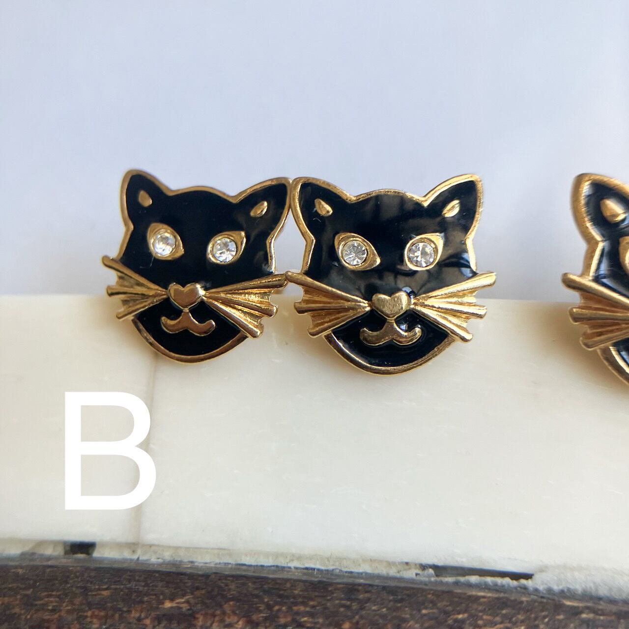 ゴールドメタルとブラックエナメルに、クリアラインストーンの目がアクセントになったお洒落な黒猫のデザインが、とても素敵な”AVON”(エイボン)のヴィンテージピアスです。