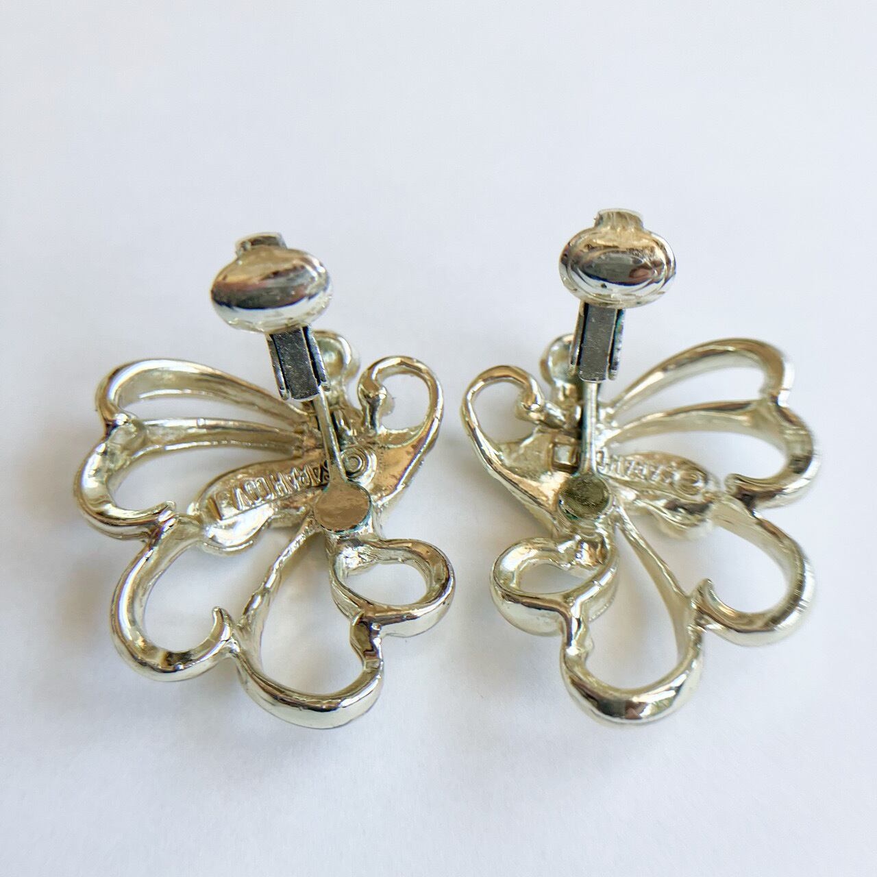 1949年に設立されたジュエリーメーカー”Sarah Coventry”(サラコベントリー )の、明るいゴールドメタルと加工されたシルバーメタルの繊細な羽根のような美しいデザインが、とても素敵なヴィンテージイヤリングです。