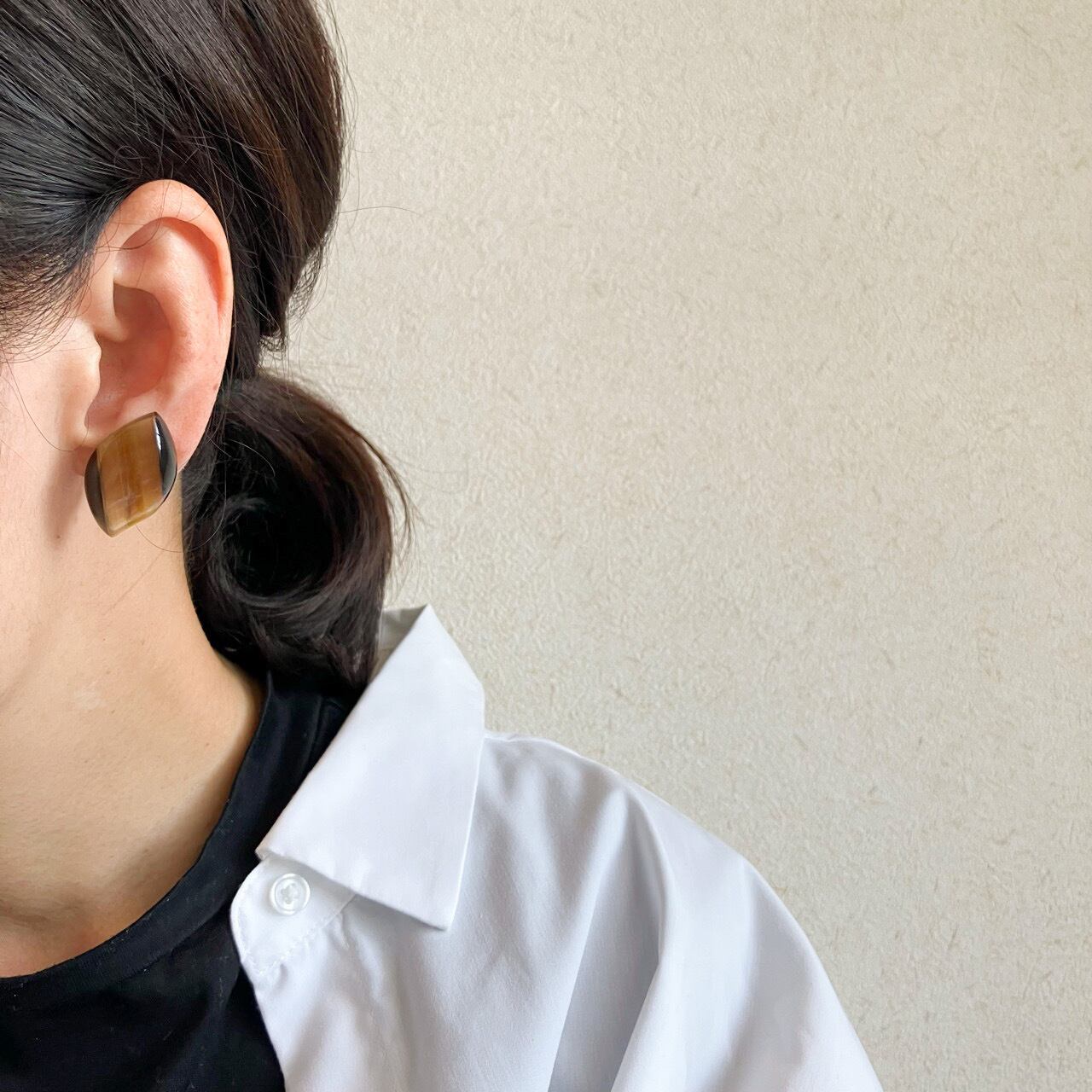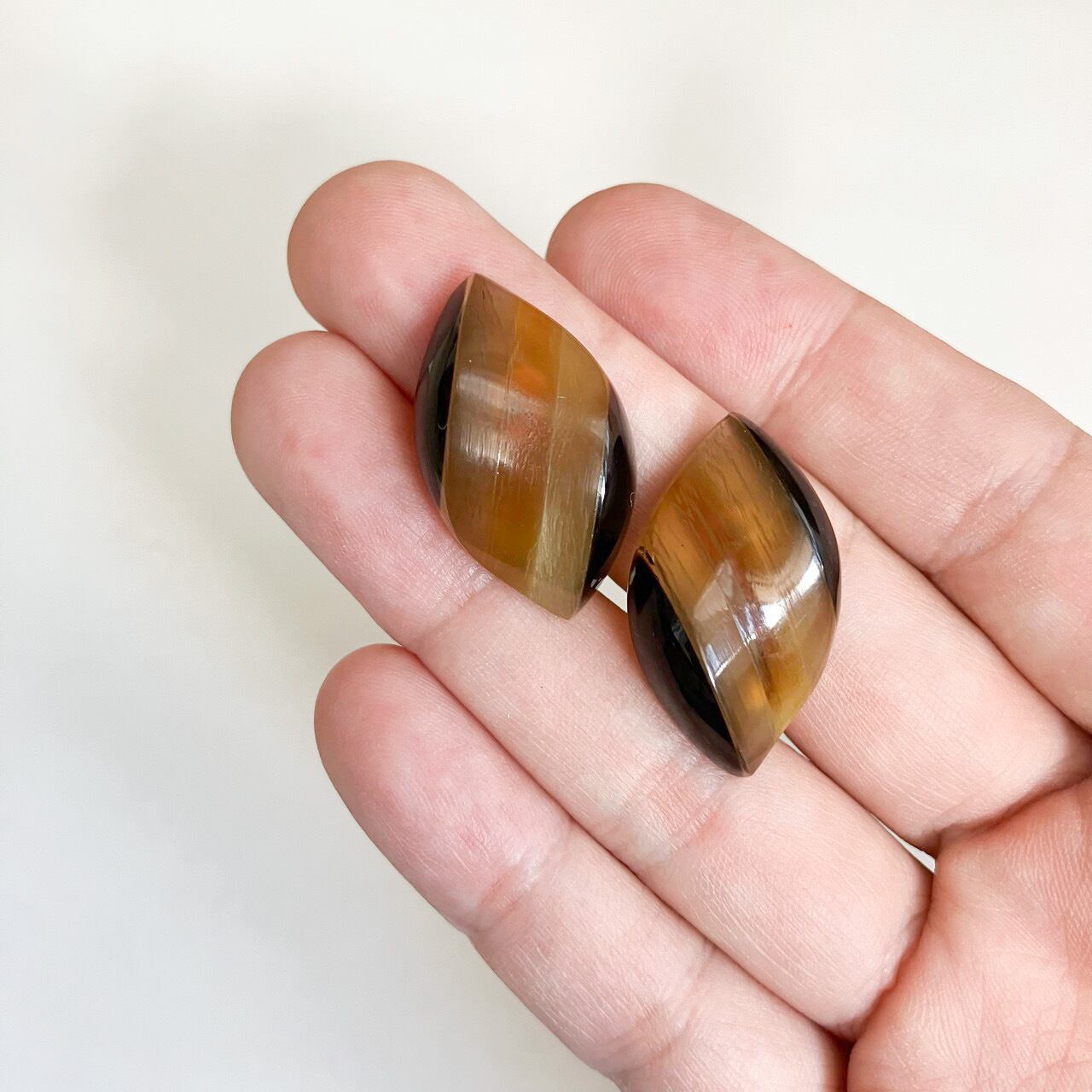 優しいブラウン系グラデーションカラーのぷっくりとした立体的な樹脂のデザインが、とても素敵なヴィンテージイヤリングです。