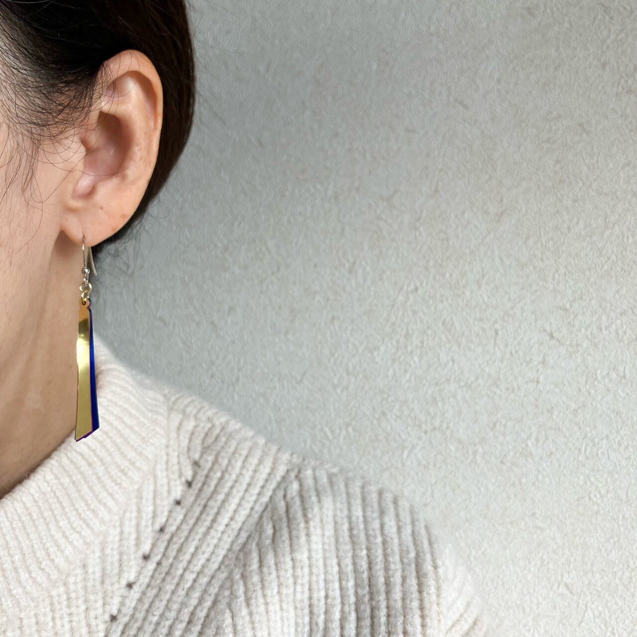 通常付けている時は重なっているので金が前になっていて、揺れると重なっているパーツが見えるデザインです。
