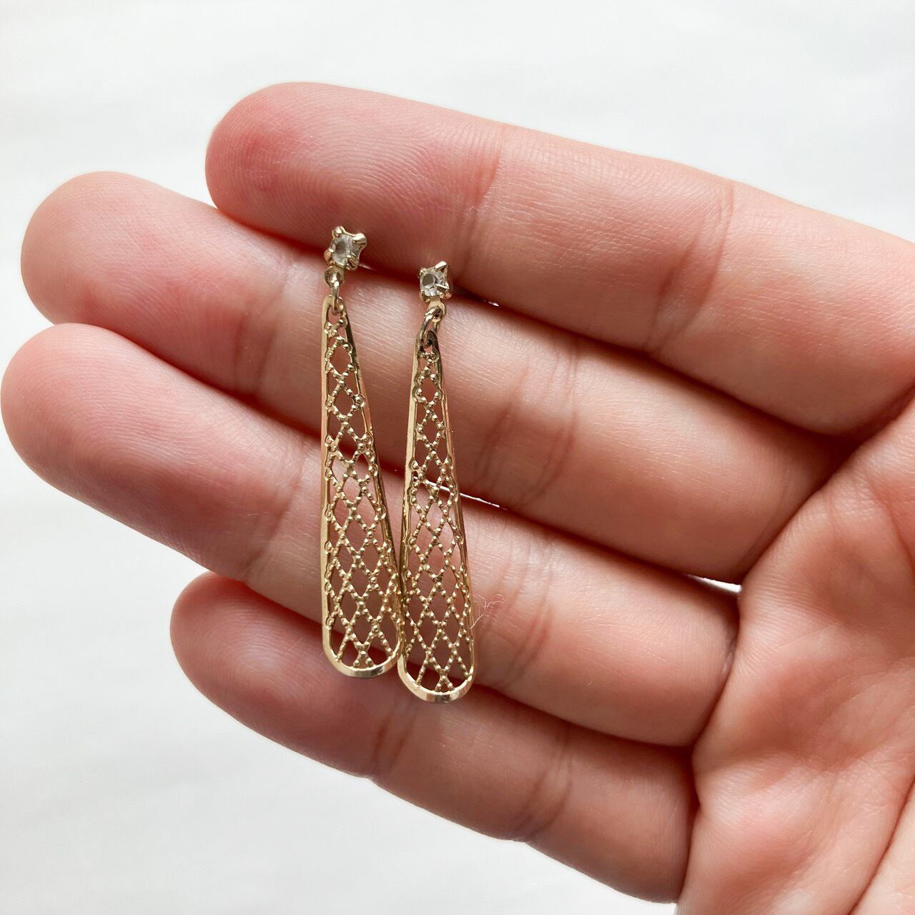 揺れる繊細なメッシュのゴールドメタルとクリアラインストーンでデザインされた、とても素敵な”AVON”(エイボン)のヴィンテージピアスです。