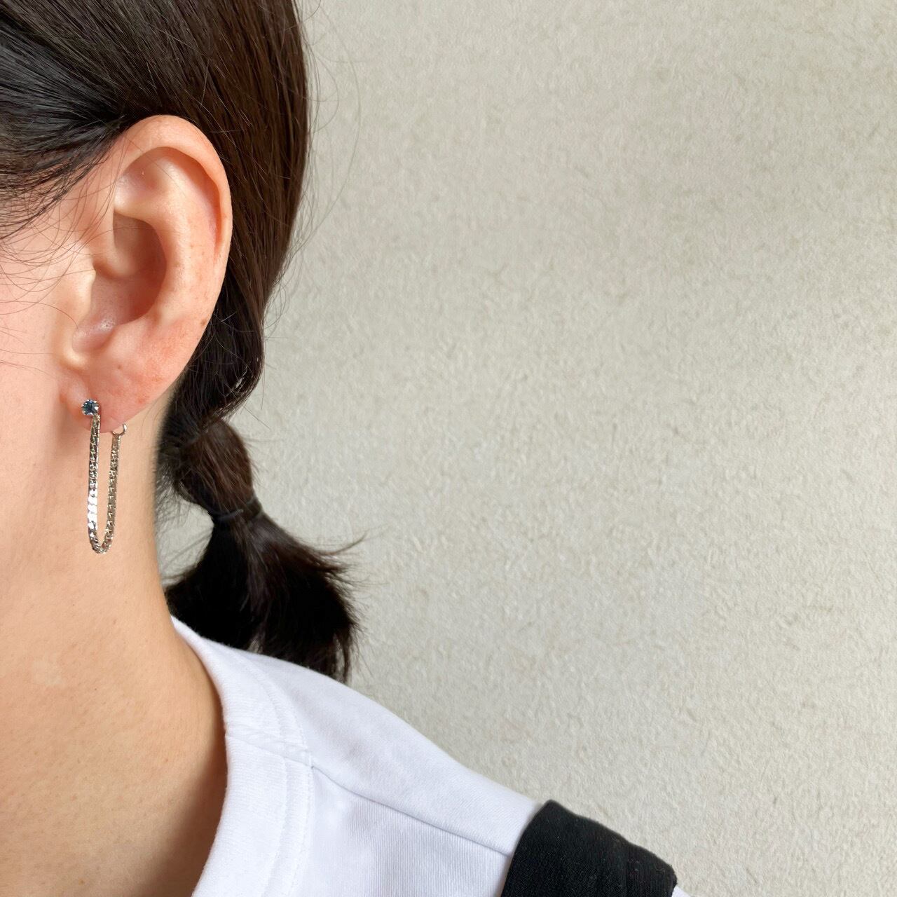 チェーンはキャッチに繋がっているので、片方は耳の裏側に周るデザインです。