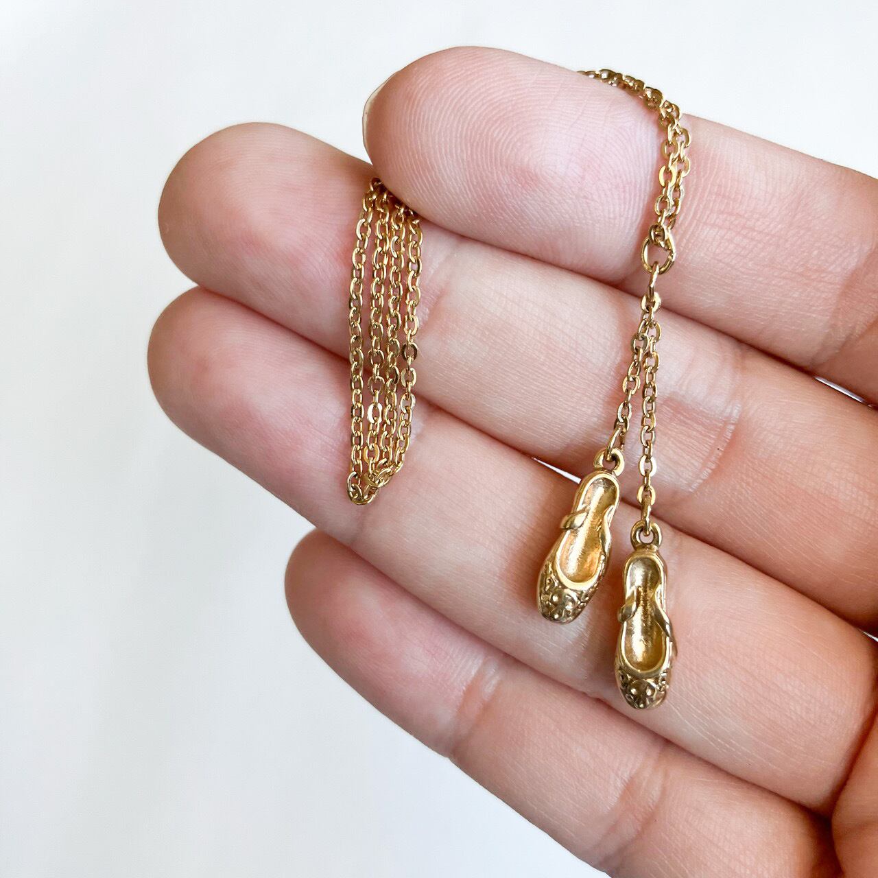 立体的な美しいバレエシューズが揺れる、ラリエットネックレス風デザインがとても素敵な”AVON”(エイボン)の子供用のヴィンテージネックレスです。