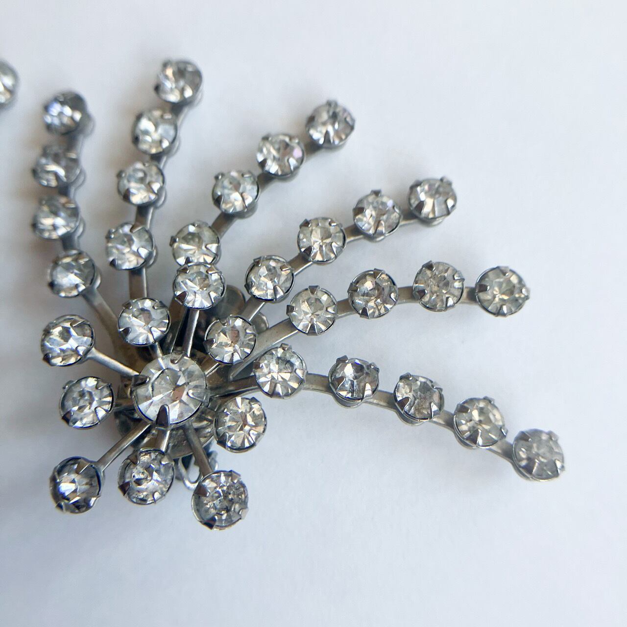 クリアラインストーンで美しく華やかな流れ星のようにデザインされた、とてもスペシャルで素敵なヴィンテージイヤリングです。