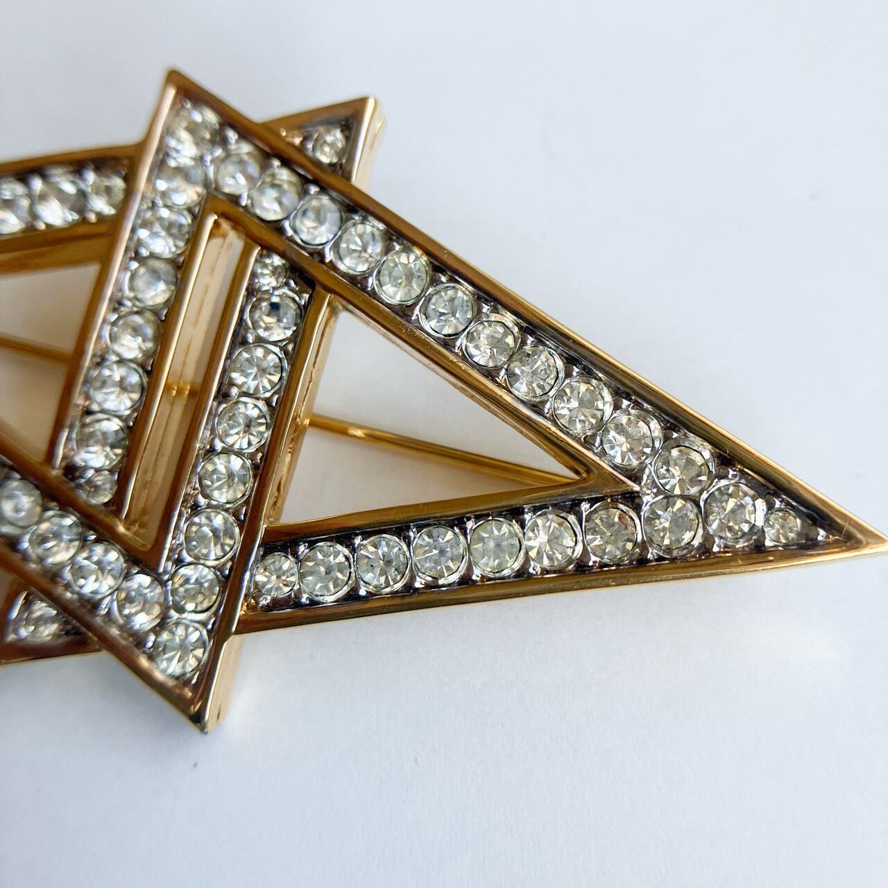 ゴールドメタルの土台にクリアラインストーンがセットされた、シャープなトライアングルデザインが、とても素敵な “NINA RICCI” ニナリッチのヴィンテージブローチです。