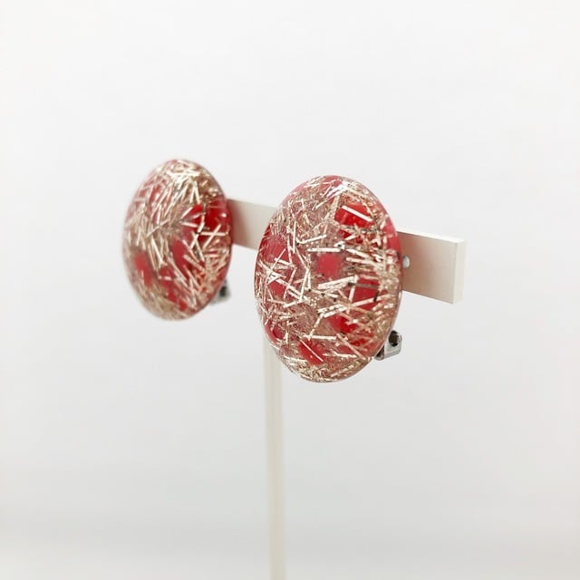 クリアルーサイトの中にレッド&ゴールドラメが閉じ込められた、50年代頃に流行していたヴィンテージコンフェッティイヤリングです。