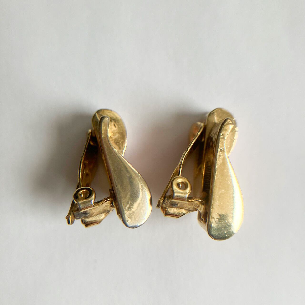 ゴールドメタルの土台に、上品で肌馴染みの良いパールピンクエナメルで立体的にモダンにデザインされた、とても素敵なヴィンテージイヤリングです。