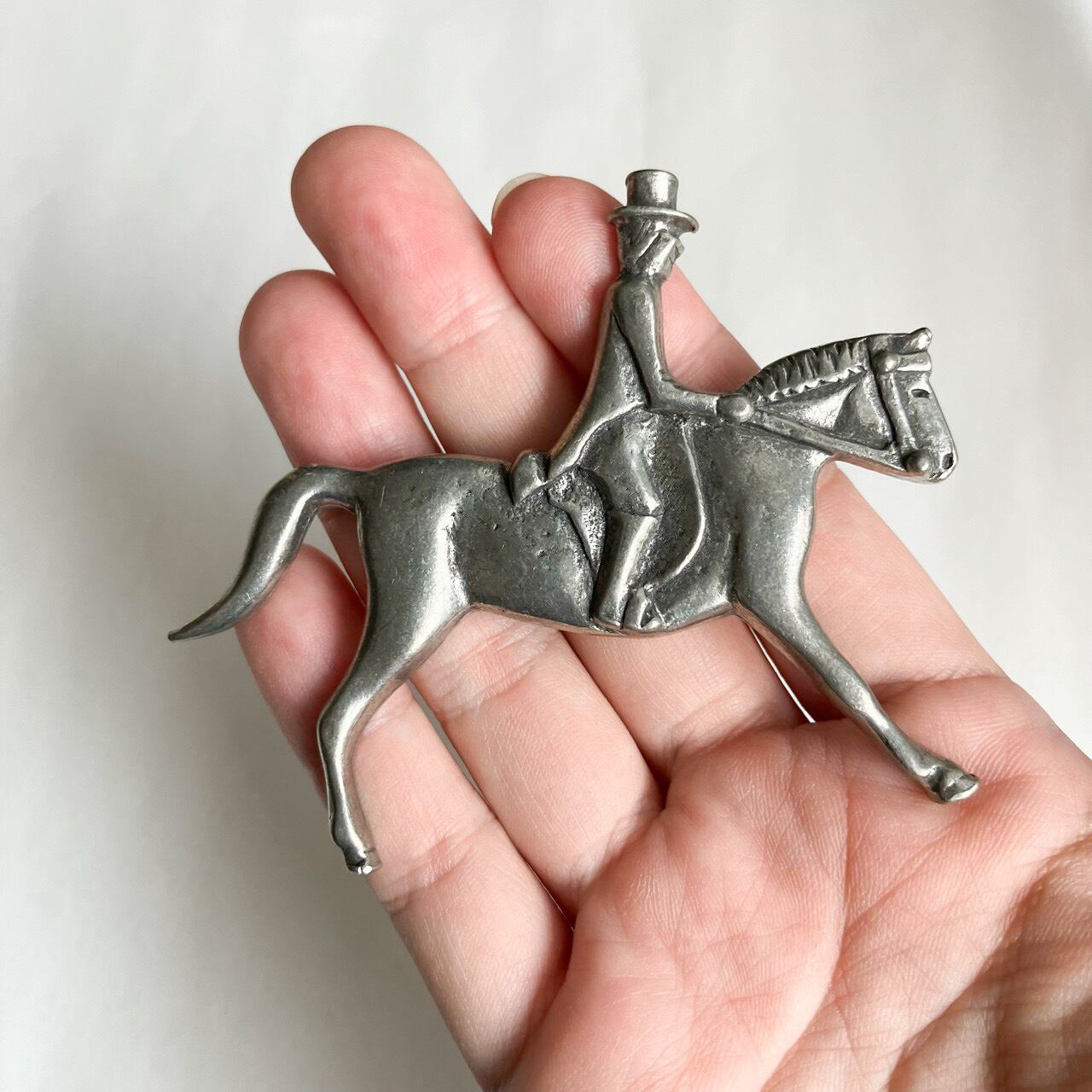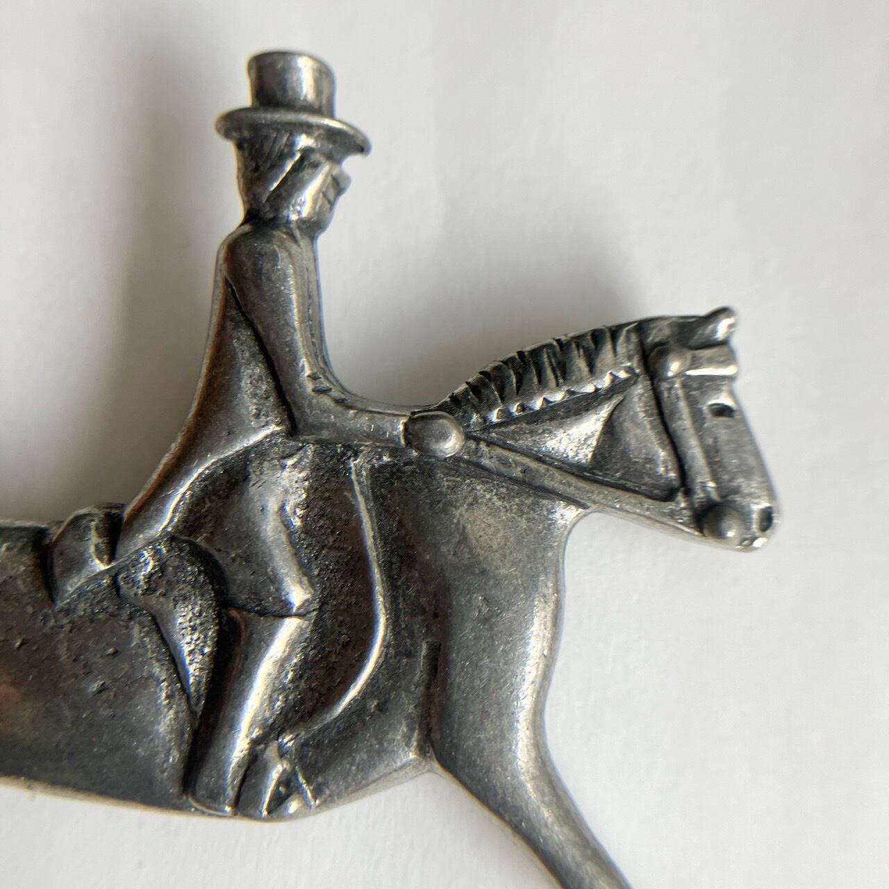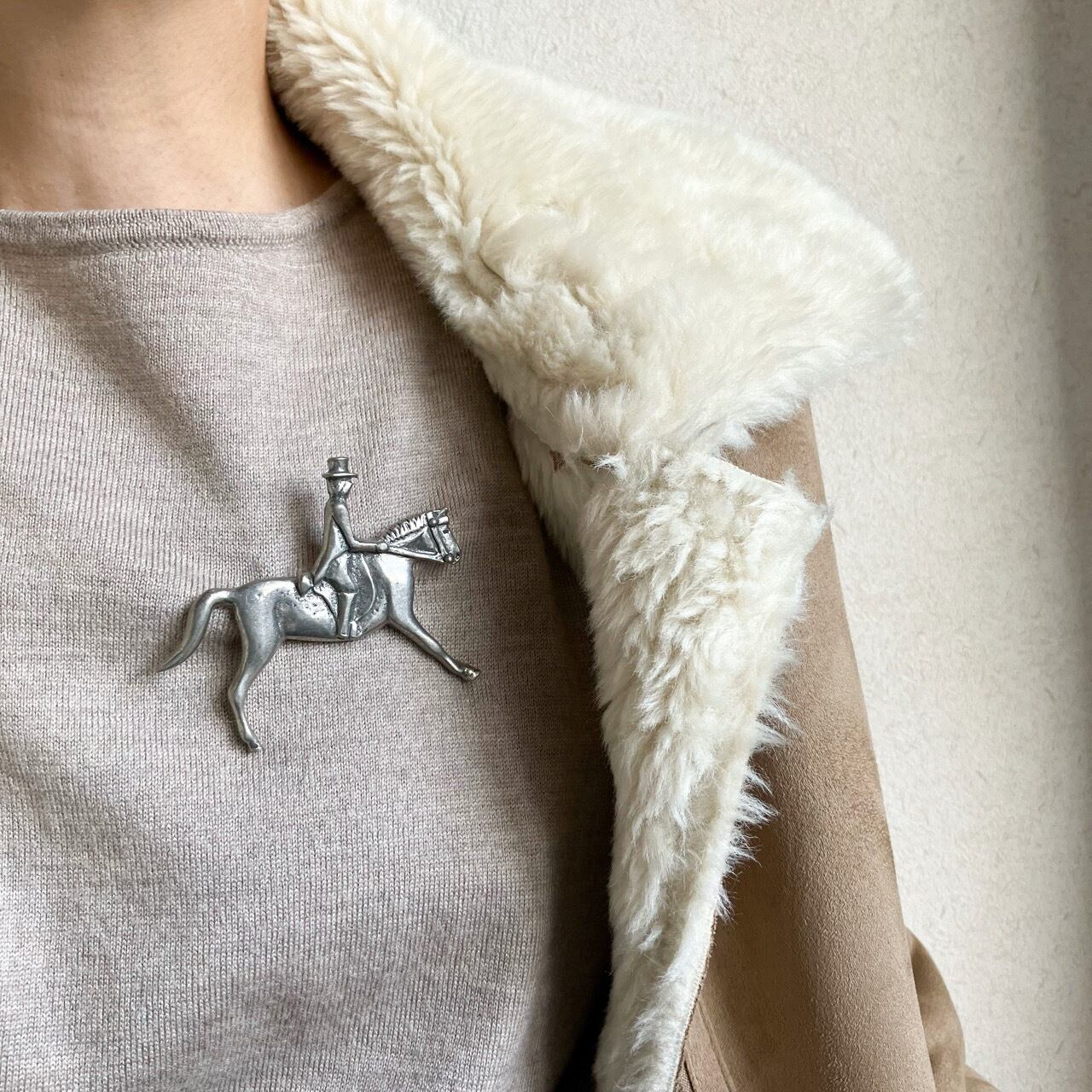 乗馬をする紳士のデザインがとても素敵な、イギリス製のピューターのヴィンテージブローチです。