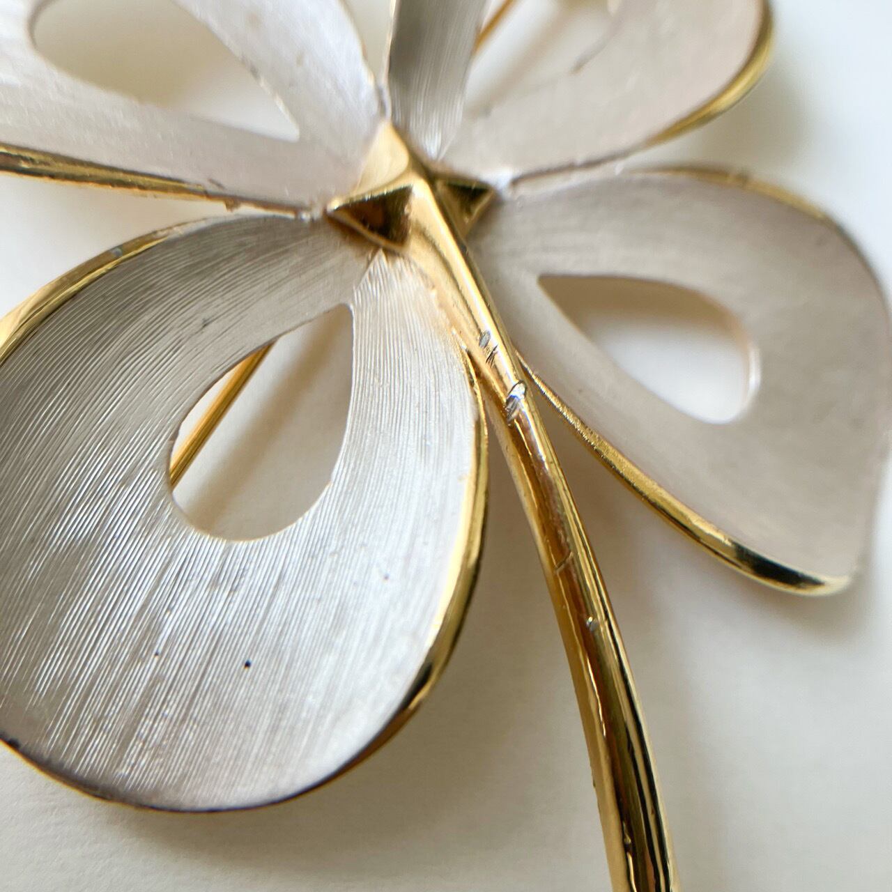ゴールドメタルの土台に、パールホワイトペイントされた立体的な四葉のクローバーのデザインが、とても素敵なヴィンテージブローチです。