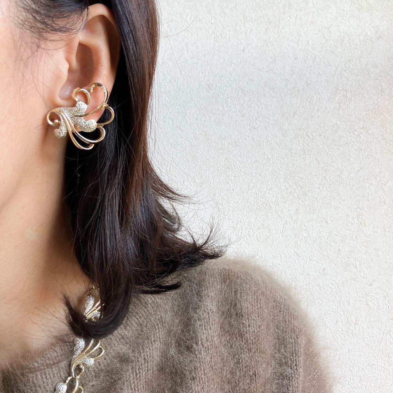 1949年に設立されたジュエリーメーカー”Sarah Coventry”(サラコベントリー )の、明るいゴールドメタルと加工されたシルバーメタルの繊細な羽根のような美しいデザインが、とても素敵なヴィンテージイヤリングです。
