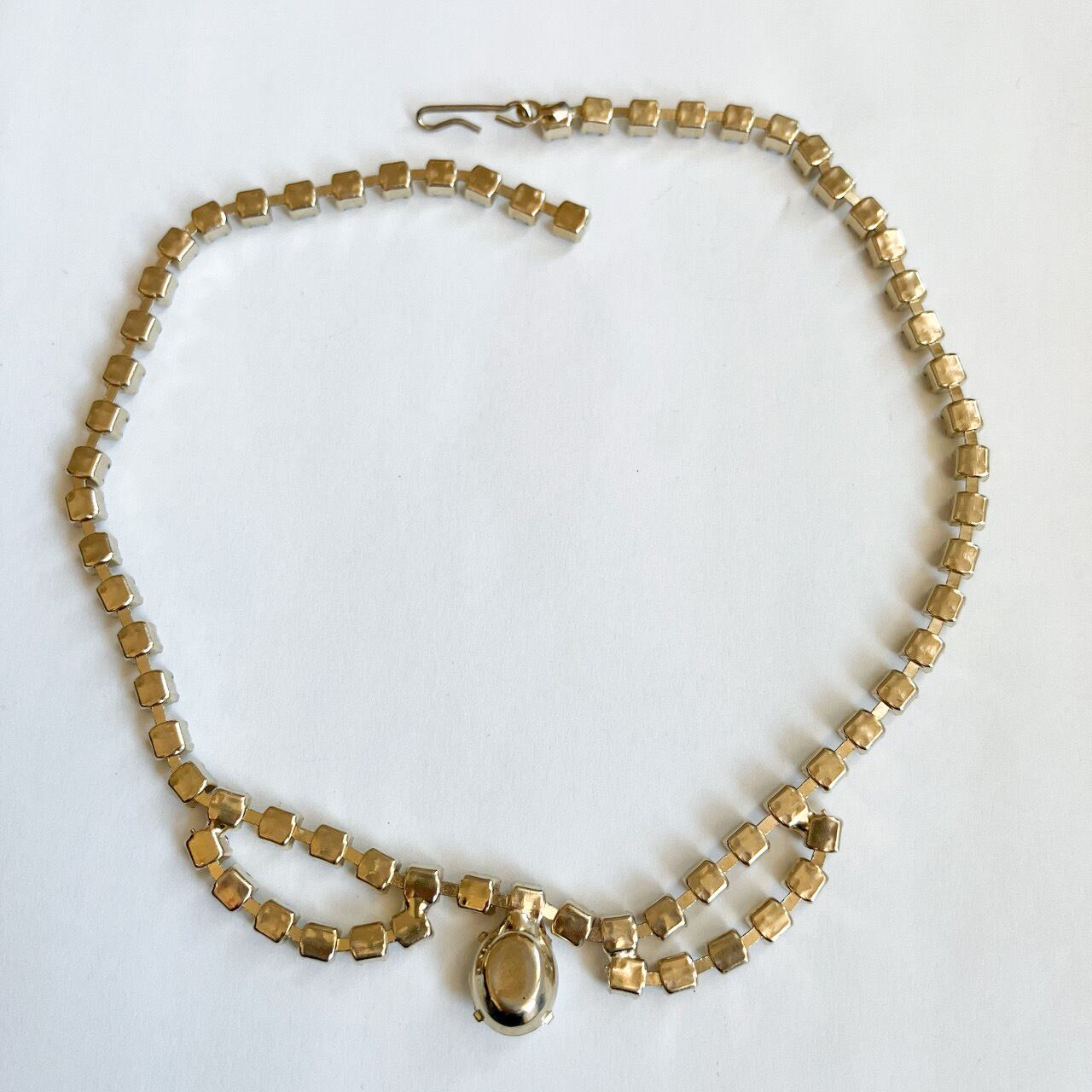 ホワイト&オーロランラインストーンで上品にデザインされた、とても素敵なヴィンテージネックレスです。