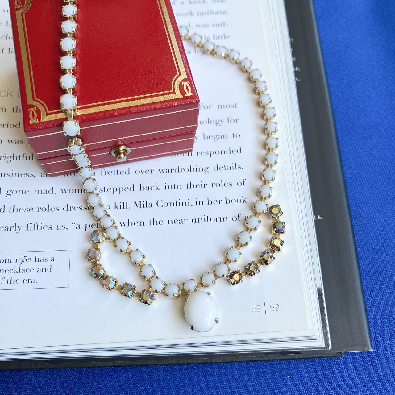 white & aurora rhinestone necklace[n-432]ヴィンテージネックレス