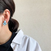 シルバーメタルの土台に、優しいライトブルーのカボションがセットされた、さりげない存在感のあるデザインが、とても素敵なヴィンテージイヤリングです。